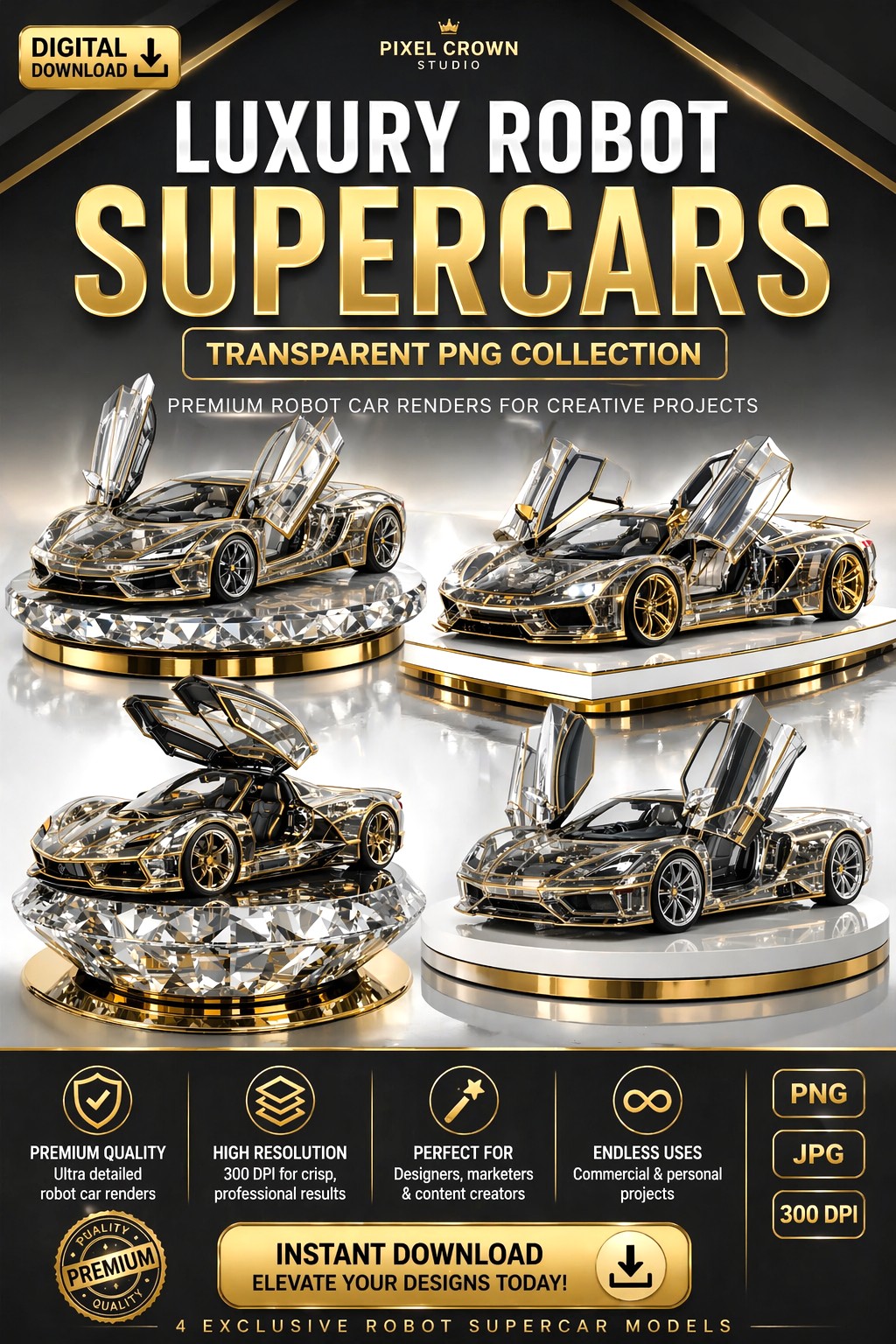 Luxury Transparent Car Art Bundle – 6 Futuristic Gold Supercar Designs (Commercial Use)