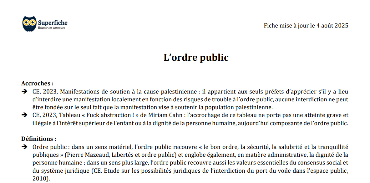 Fiche de préparation aux concours administratifs publiée par Superfiche.