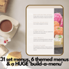 31+ menus created to suit all cooking abilities (beginner, intermediate and advanced) and menu sizes, and 6 themed menus to choose from. Perfect for when your mind goes completely blank (it happens to the best of us!)A comprehensive 'Build-a-Menu' to create the perfect spread that suits you