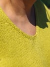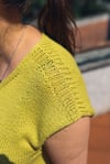 Leve, fresco e simples — este top de verão é a peça perfeita para os dias quentes. Tricotado de forma rápida em ponto meia com agulhas de 4,5 mm, tem um elegante decote em V, que lhe confere um ar descontraído, feminino e versátil. Ideal para usar sobre o fato de banho ou com uns jeans, este top é um projeto acessível e gratificante tanto para tricoteiras iniciantes como para mais experientes.