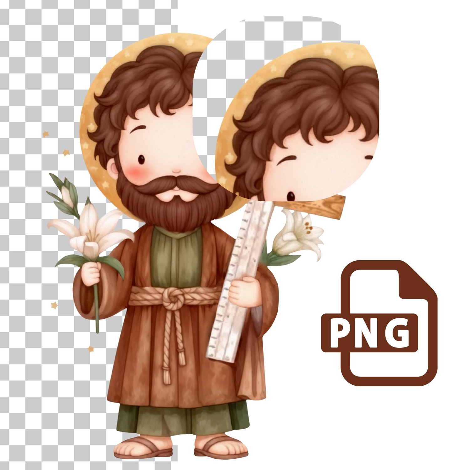 San José Obrero Clipart PNG Acuarela | Patrono de los Trabajadores | Ilustración Religiosa | Descarga Digital Católica | Santitos Artesanos