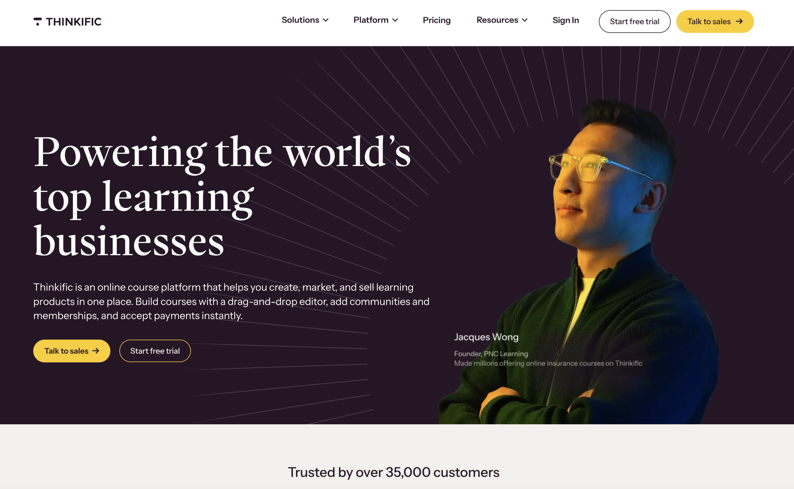 Thinkific is a Selar alternative focused on course creation. Thinkific might not be well-suited for Selar sellers who want to sell ebooks, tickets, services, or physical goods. However, if you’re selling online courses, this alternative to Selar is packed with features for selling courses, such as quizzes, assignments, and more.