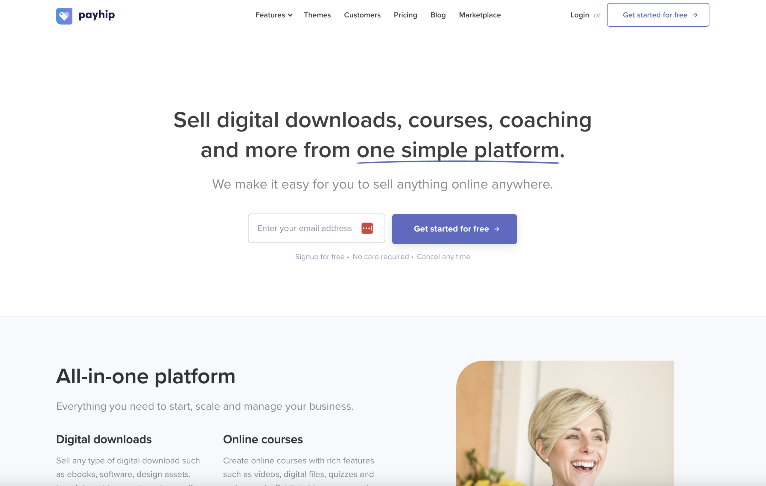 The best Selar alternatives, like Payhip, offer sellers an all-in-one platform for building an online store. You’ll access a wide-range of features for individualized product types. You can sell digital downloads, courses, coaching services, memberships, software, and physical products on this Selar alternative. For example, online courses allow you to give quizzes, drip content, provide completion certificates, and much more. Digital downloads allow you to set download limits and PDF-stamp your documents to prevent piracy.