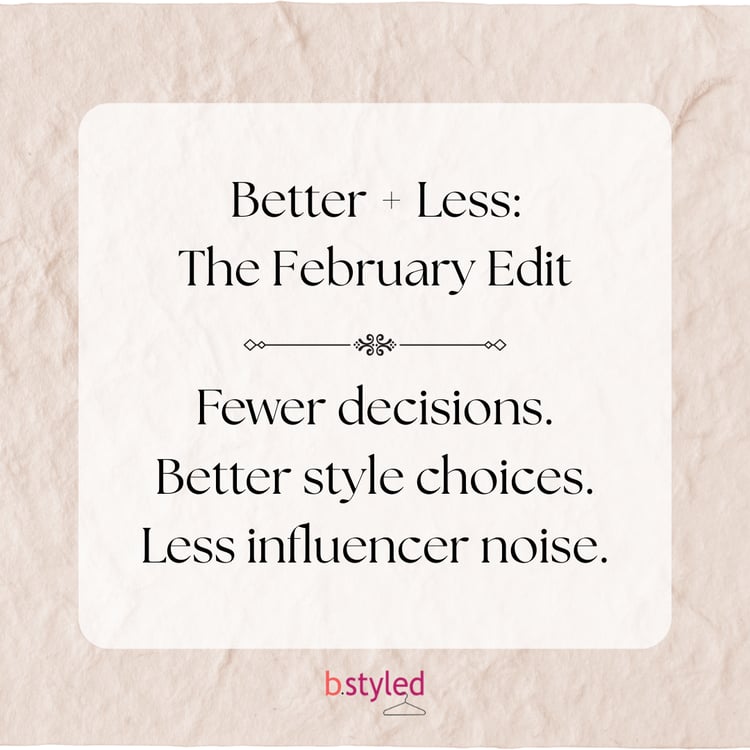 As a personal stylist and creator of the B.Styled Seasonal Style System, my goal is to make getting dressed easier, more enjoyable, and totally doable—no matter your age, body, or budget.