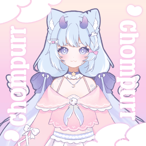 Nyahallo! My name is Chompurr and I am an up-and-coming English based indie v-tuber! I stream on Twitch, but during my downtimes, I love to make super cute and affordable VRChat models! Thank you so much for considering buying from me! Your support helps me, my avatars, and the streams <3