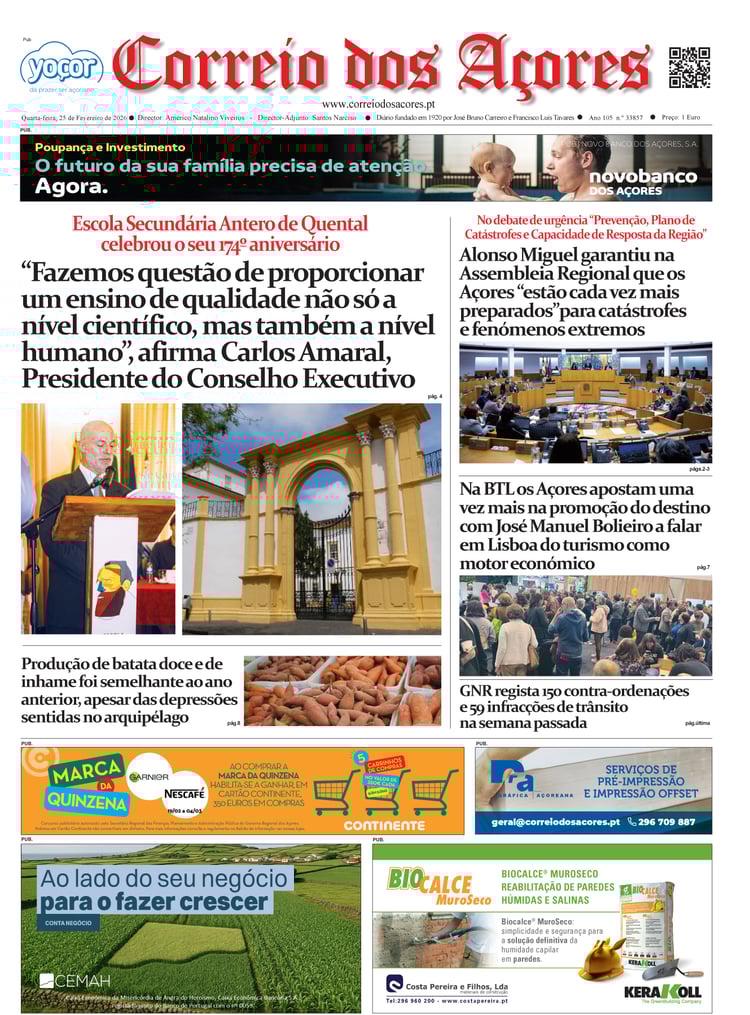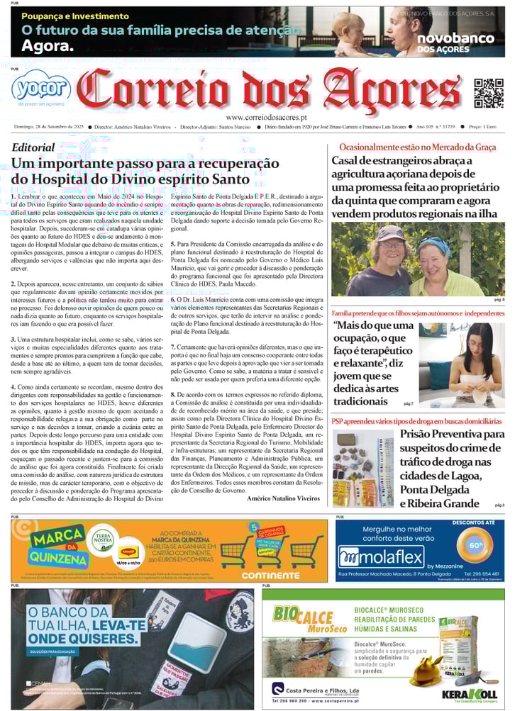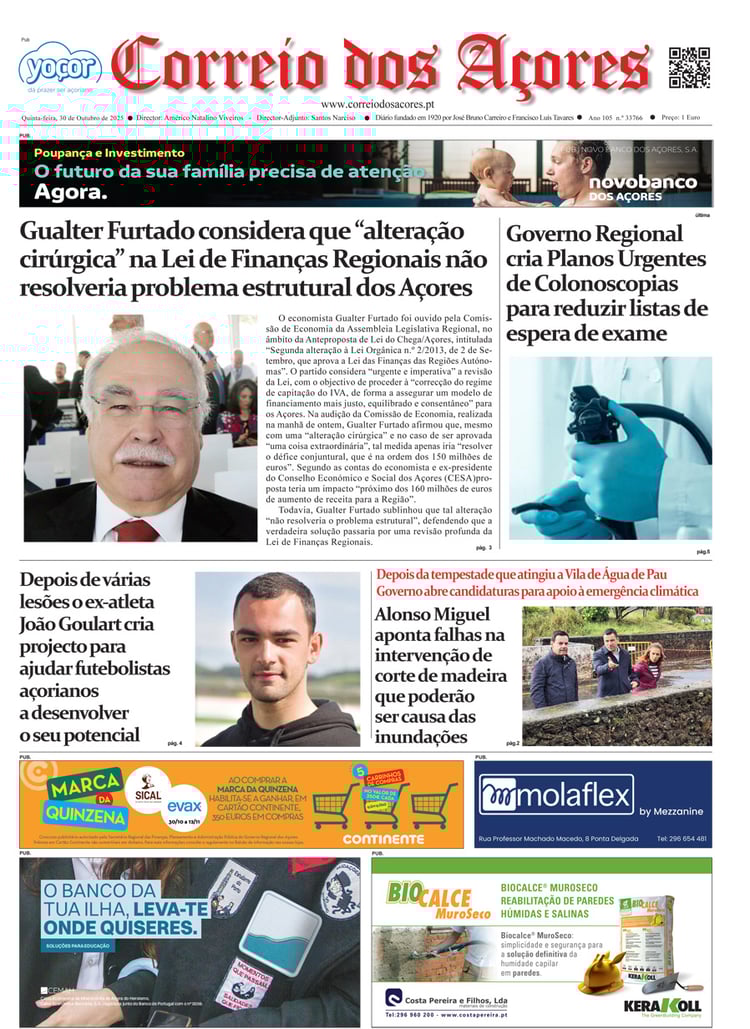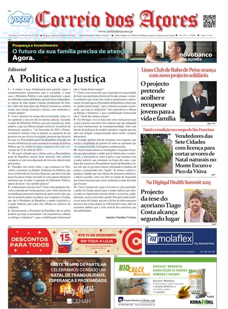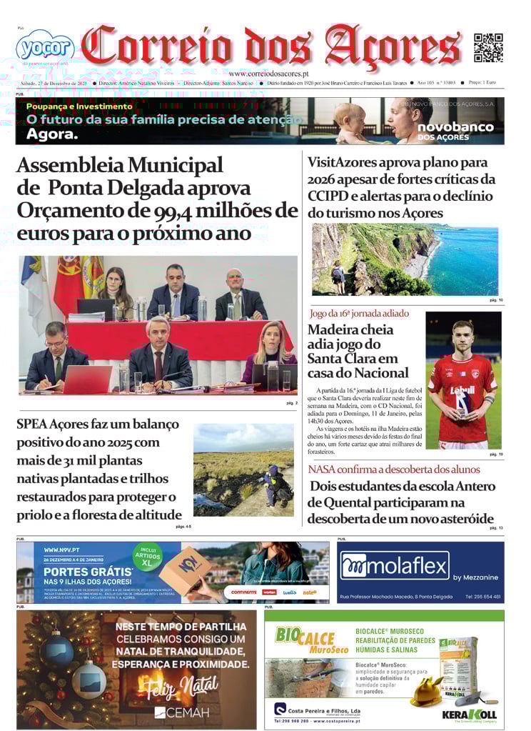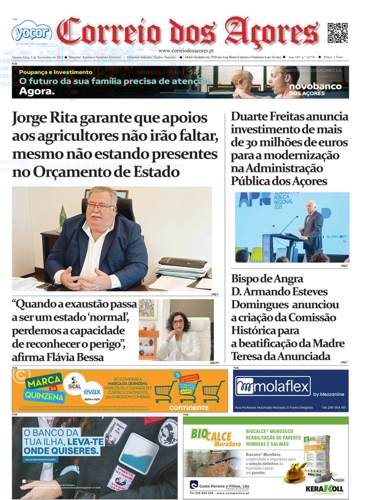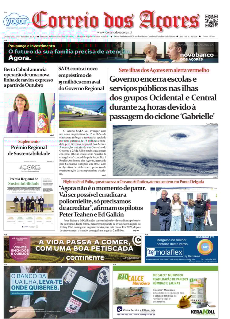 Tal como há um século, o jornal Correio dos Açores defronta-se agora com uma sociedade amedrontada. Mas este é o tempo de calcular os excessos e a vertigem que formatou as duas décadas deste milénio, e redirecionar a bússola do futuro na busca do equilíbrio que faltou nas lideranças dos países, e nos consequentes comportamentos sociais, económicos e culturais.