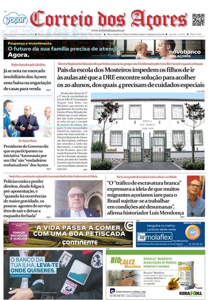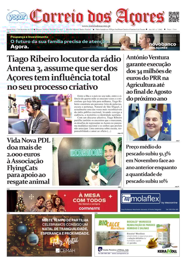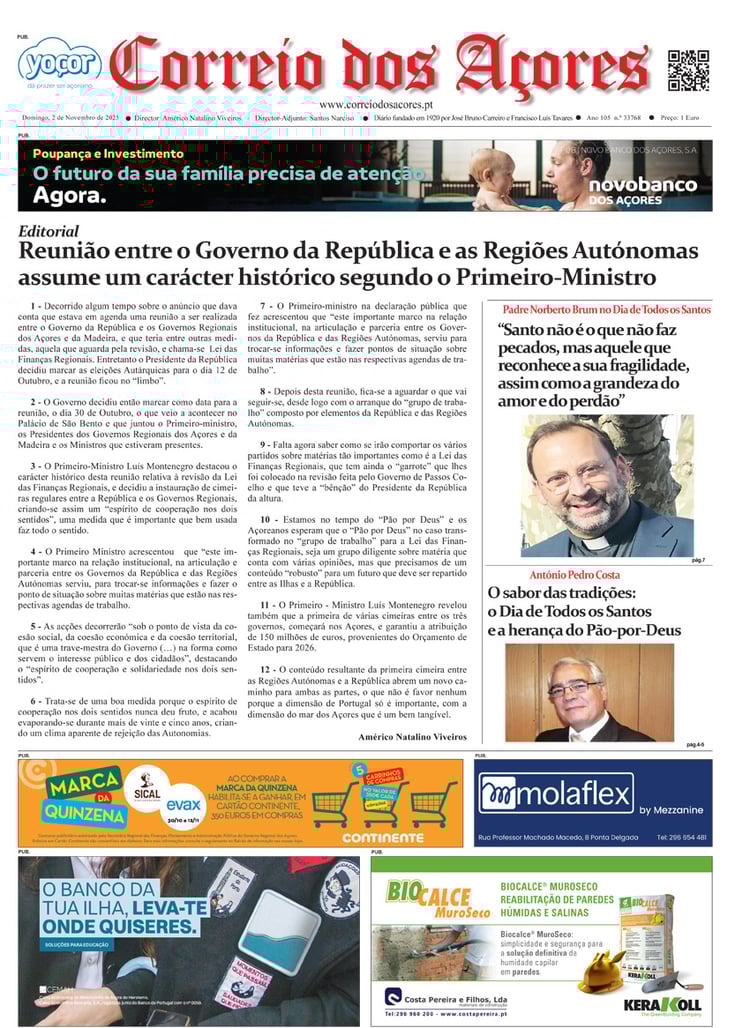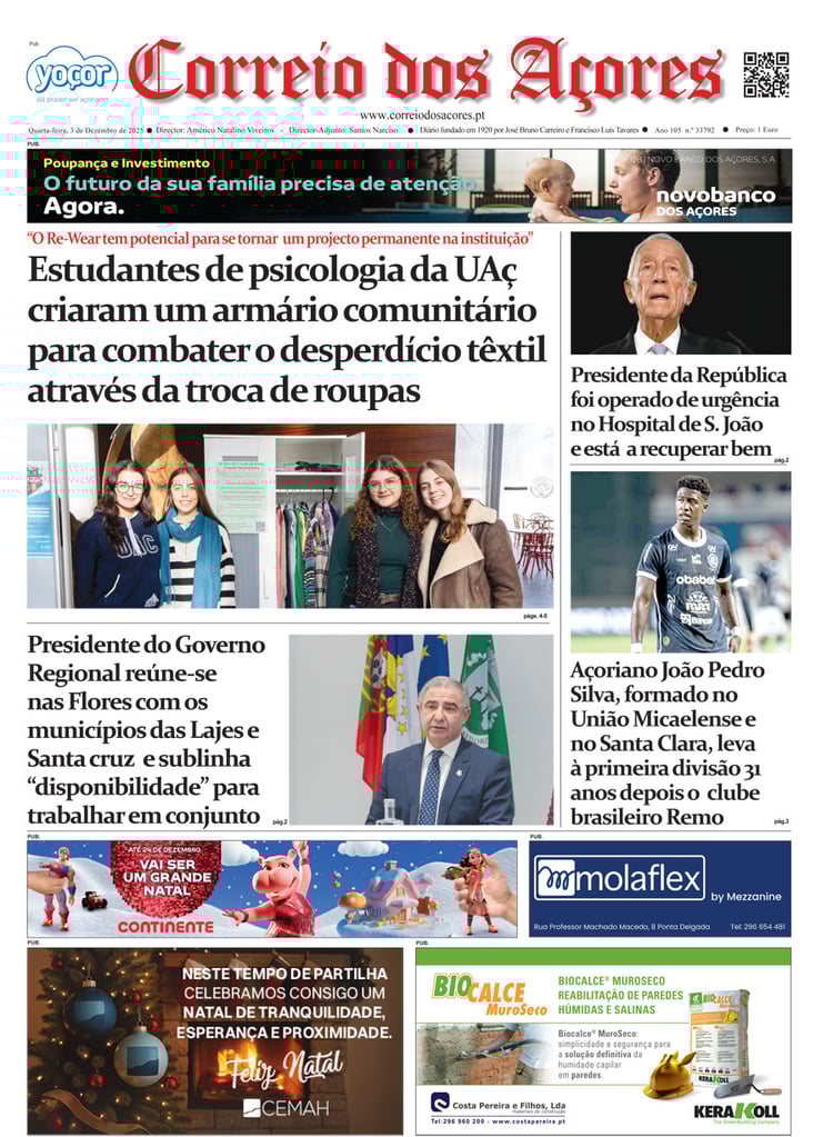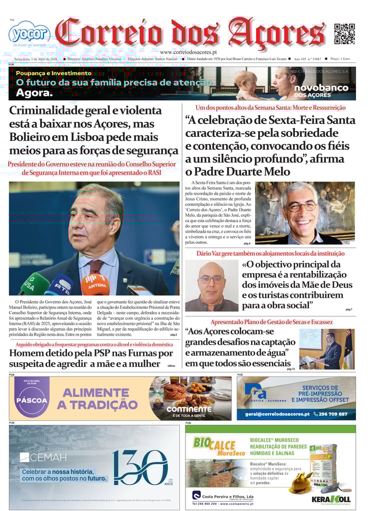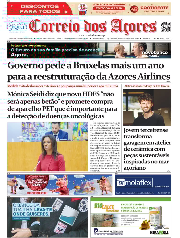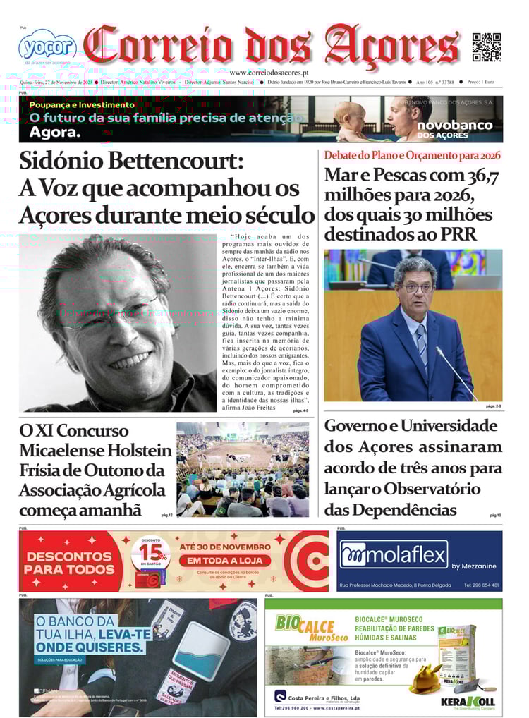 Tal como há um século, o jornal Correio dos Açores defronta-se agora com uma sociedade amedrontada. Mas este é o tempo de calcular os excessos e a vertigem que formatou as duas décadas deste milénio, e redirecionar a bússola do futuro na busca do equilíbrio que faltou nas lideranças dos países, e nos consequentes comportamentos sociais, económicos e culturais.