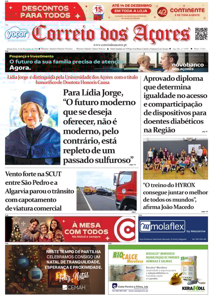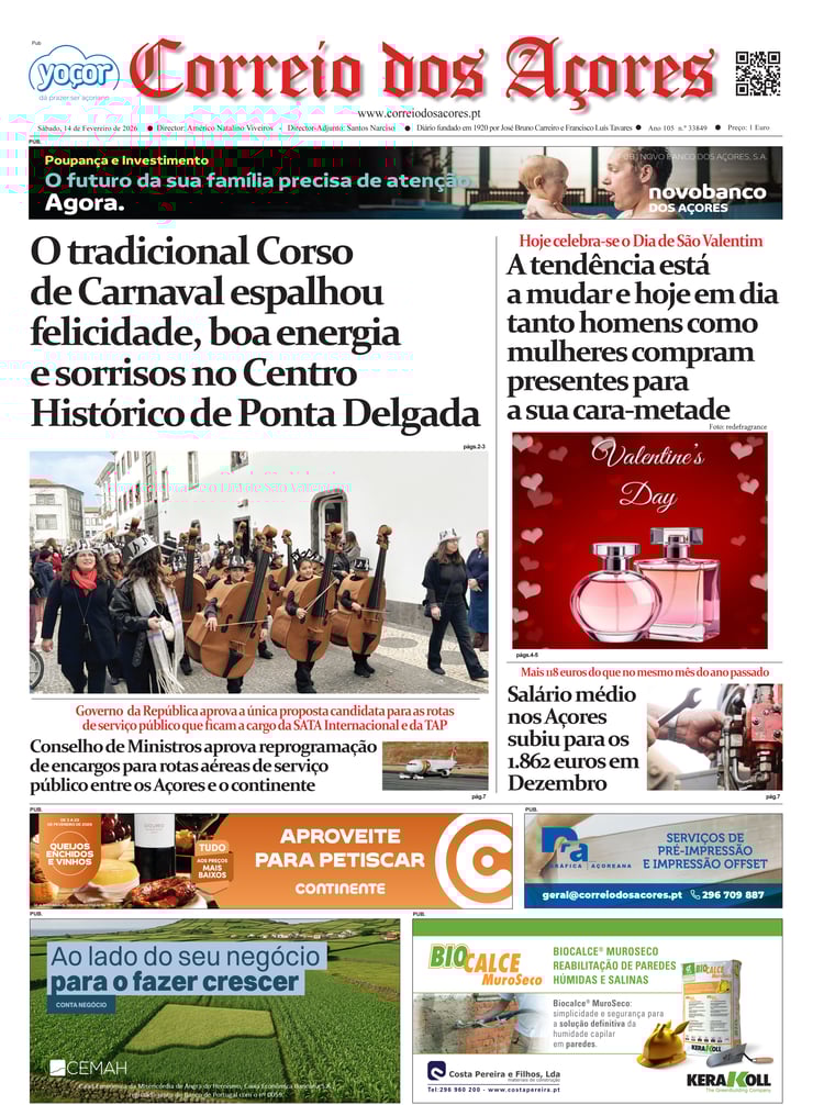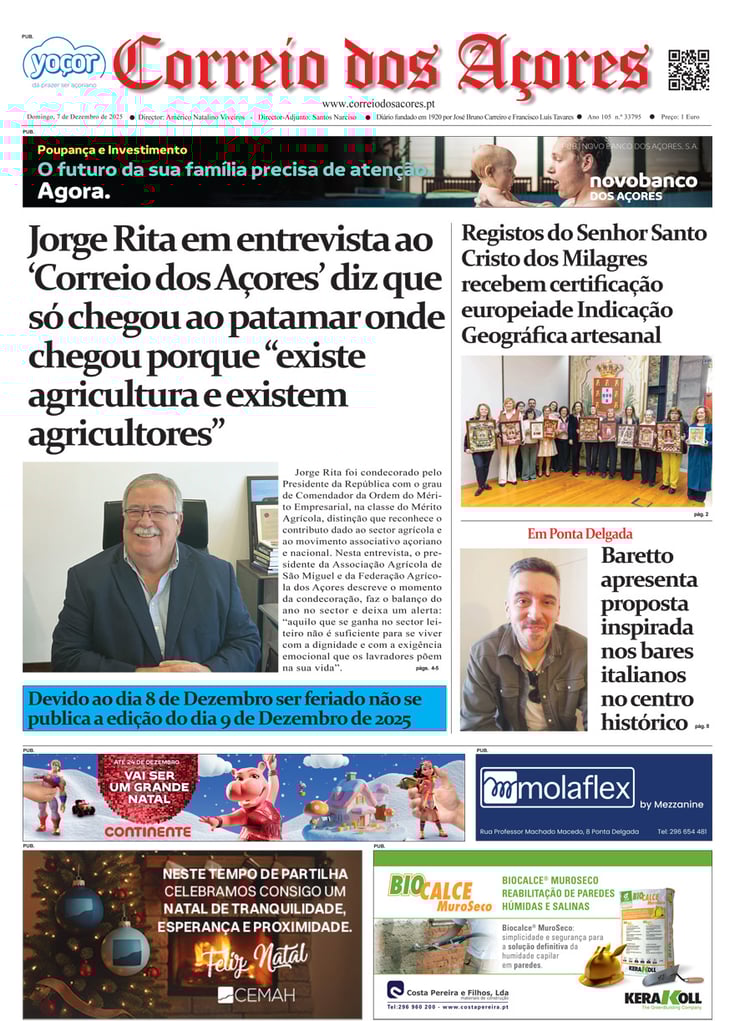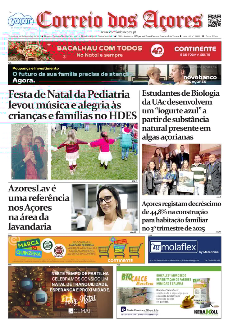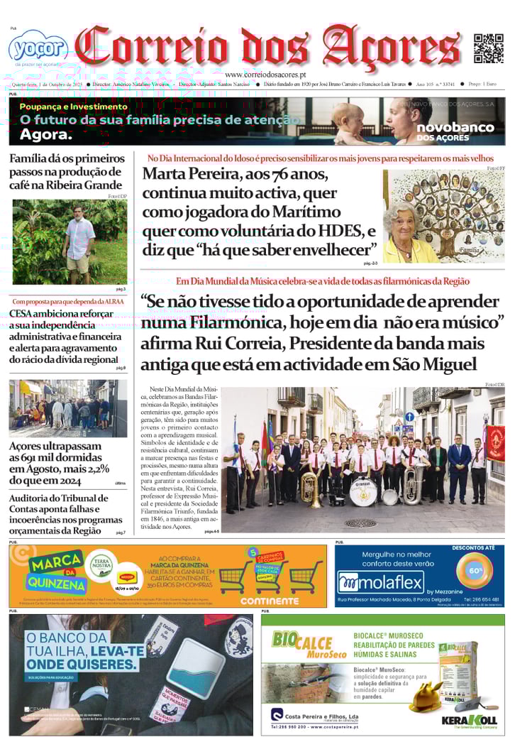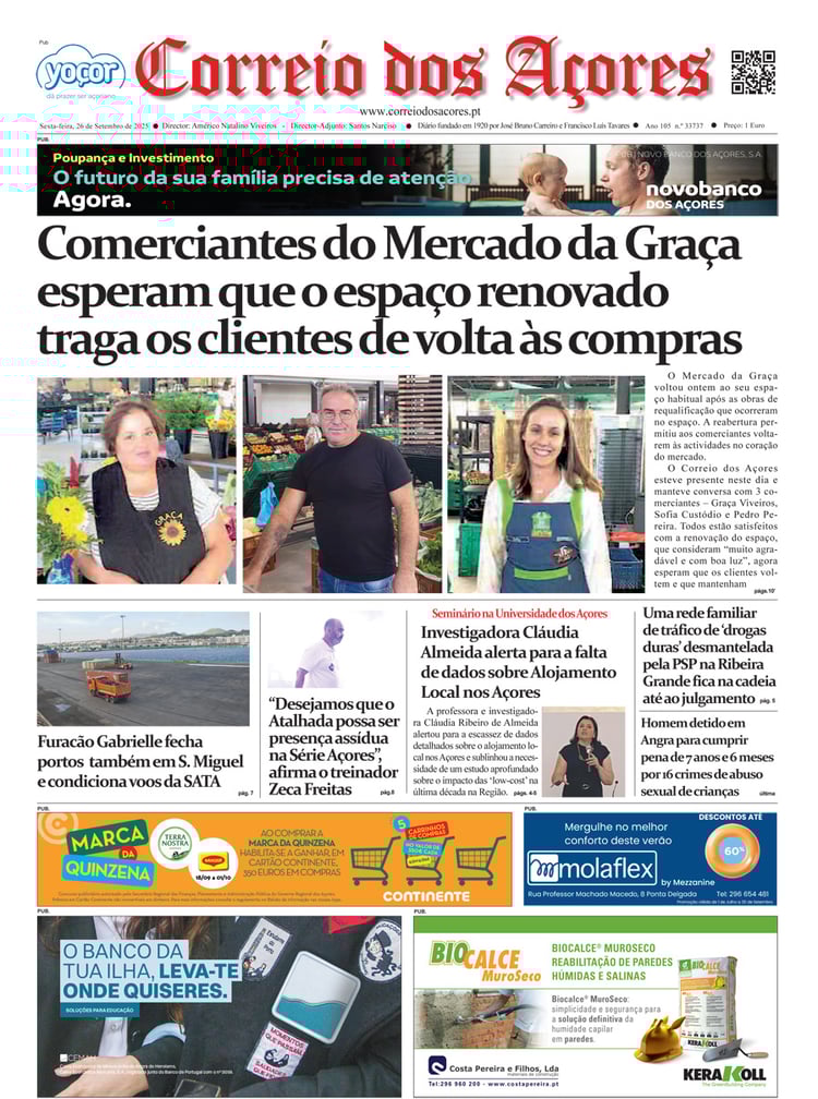 Tal como há um século, o jornal Correio dos Açores defronta-se agora com uma sociedade amedrontada. Mas este é o tempo de calcular os excessos e a vertigem que formatou as duas décadas deste milénio, e redirecionar a bússola do futuro na busca do equilíbrio que faltou nas lideranças dos países, e nos consequentes comportamentos sociais, económicos e culturais.