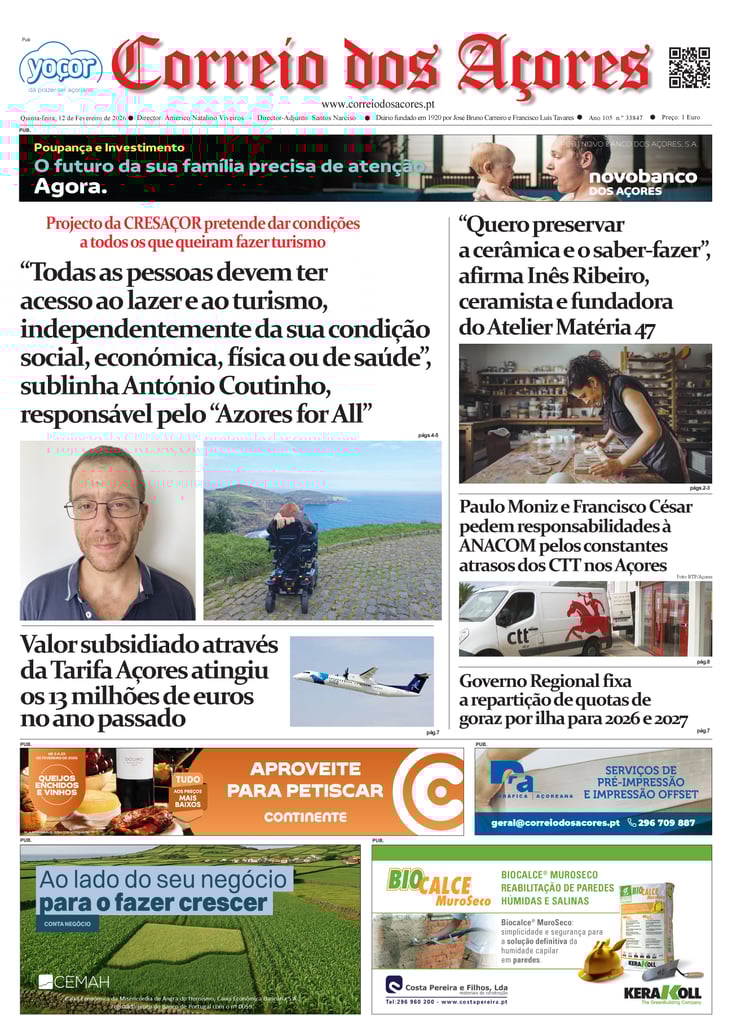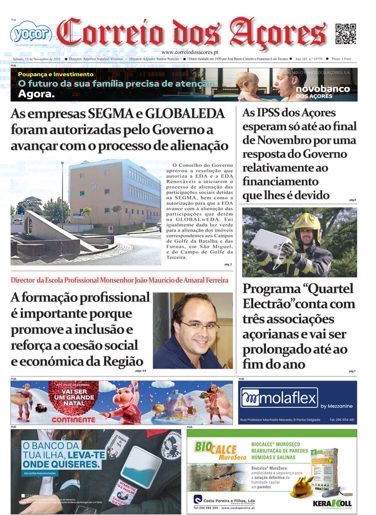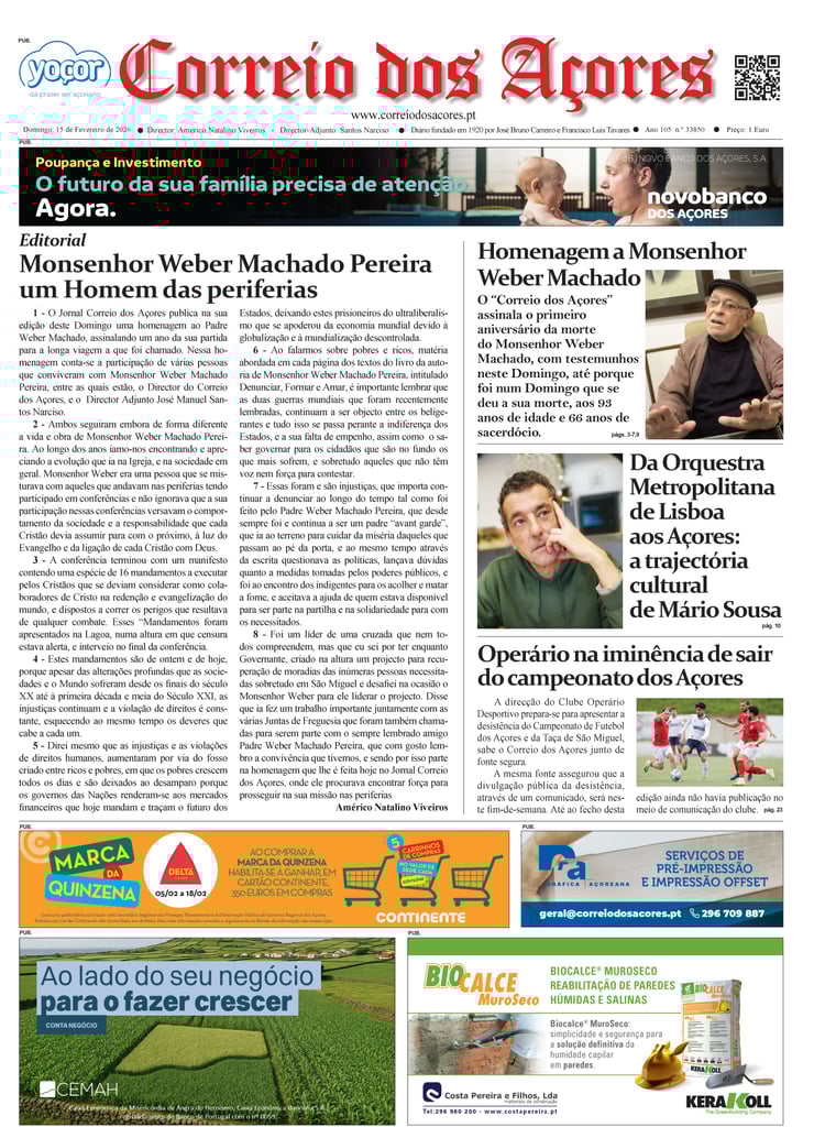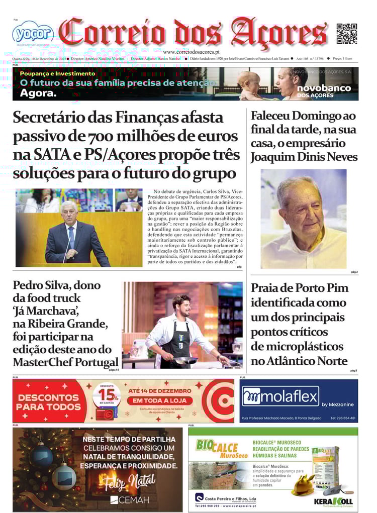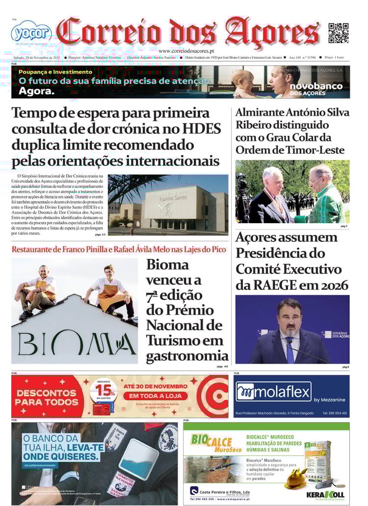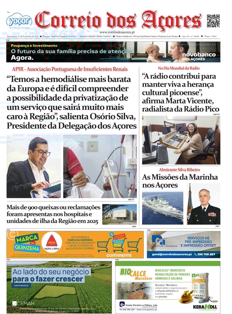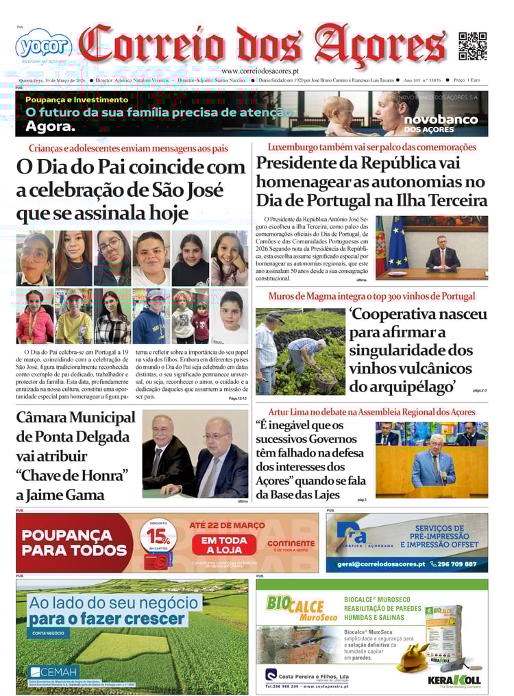Tal como há um século, o jornal Correio dos Açores defronta-se agora com uma sociedade amedrontada. Mas este é o tempo de calcular os excessos e a vertigem que formatou as duas décadas deste milénio, e redirecionar a bússola do futuro na busca do equilíbrio que faltou nas lideranças dos países, e nos consequentes comportamentos sociais, económicos e culturais.