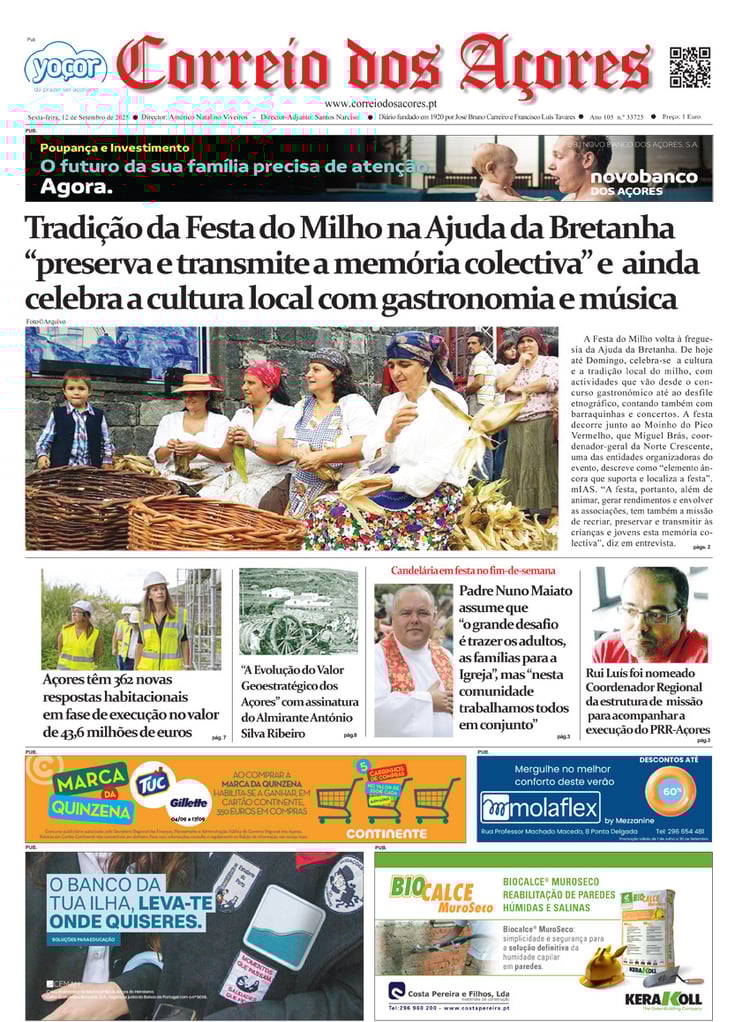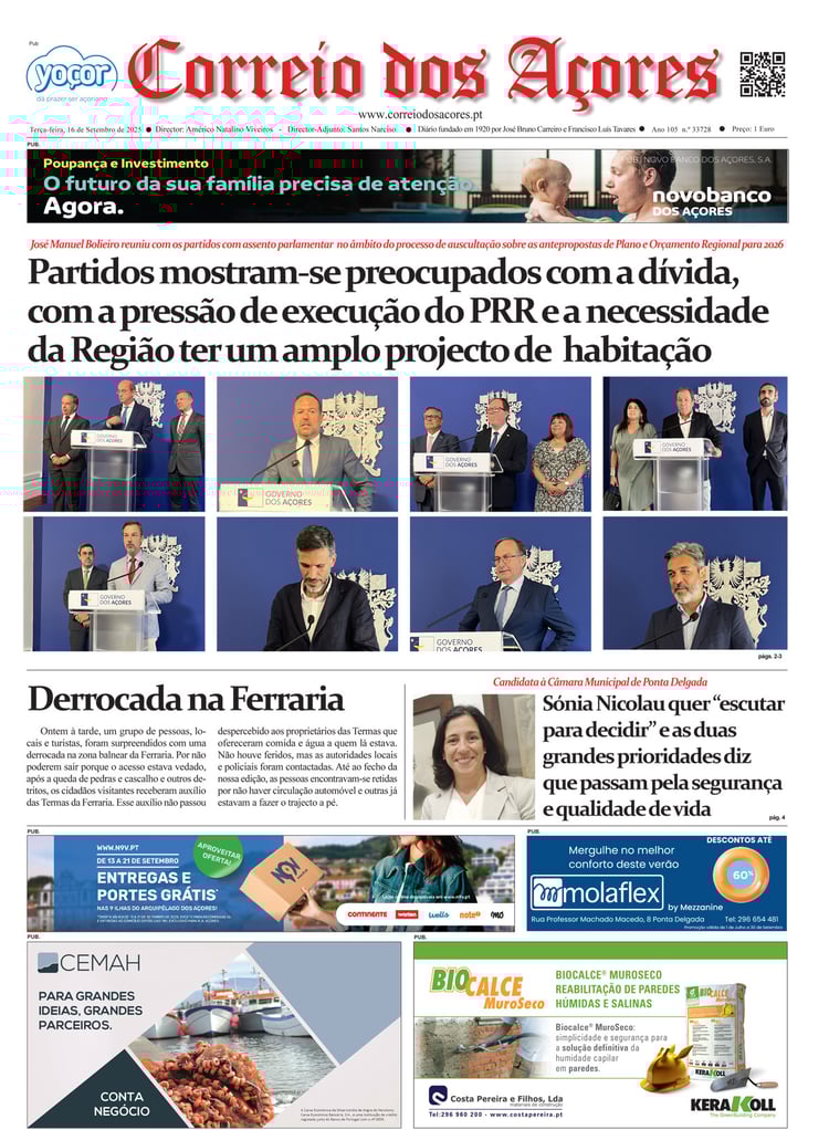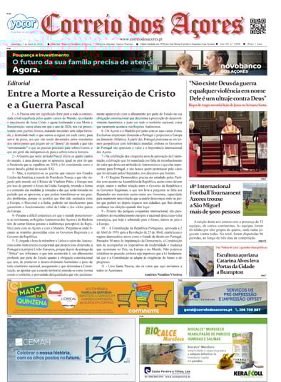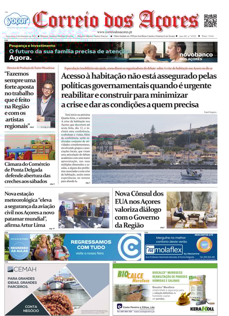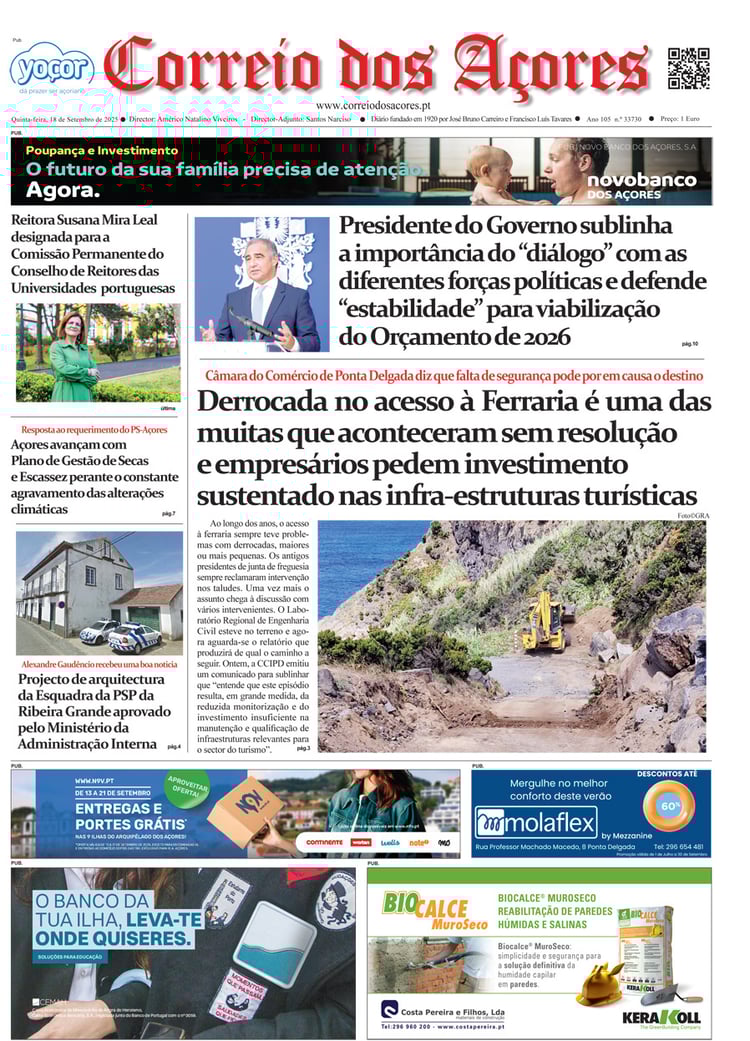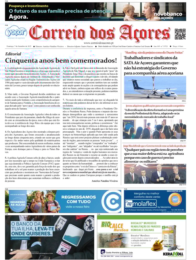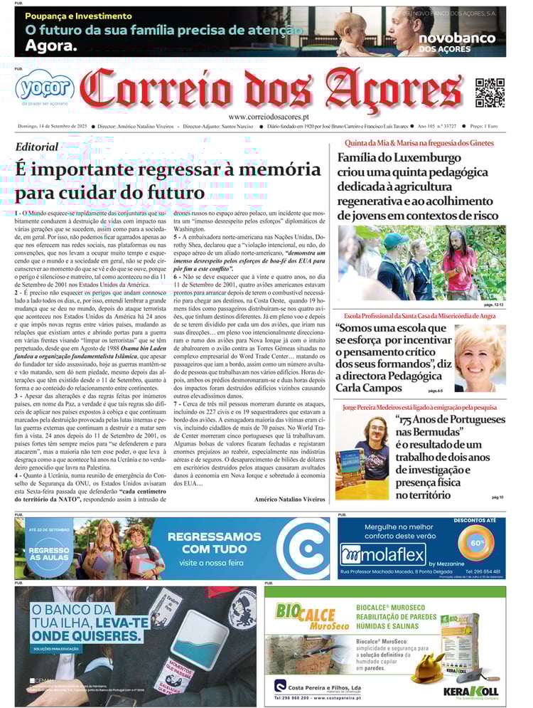 Tal como há um século, o jornal Correio dos Açores defronta-se agora com uma sociedade amedrontada. Mas este é o tempo de calcular os excessos e a vertigem que formatou as duas décadas deste milénio, e redirecionar a bússola do futuro na busca do equilíbrio que faltou nas lideranças dos países, e nos consequentes comportamentos sociais, económicos e culturais.
