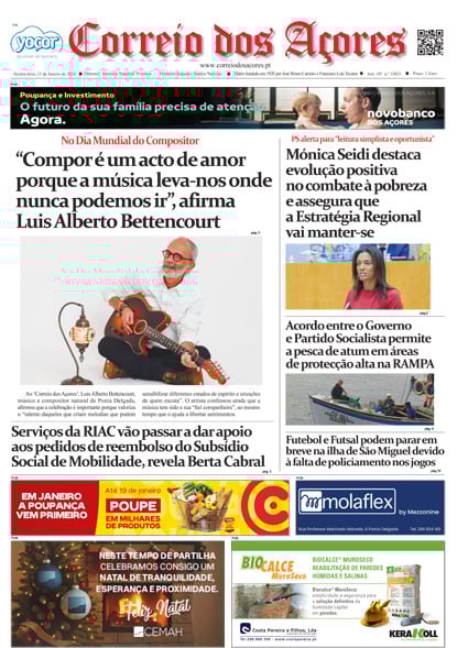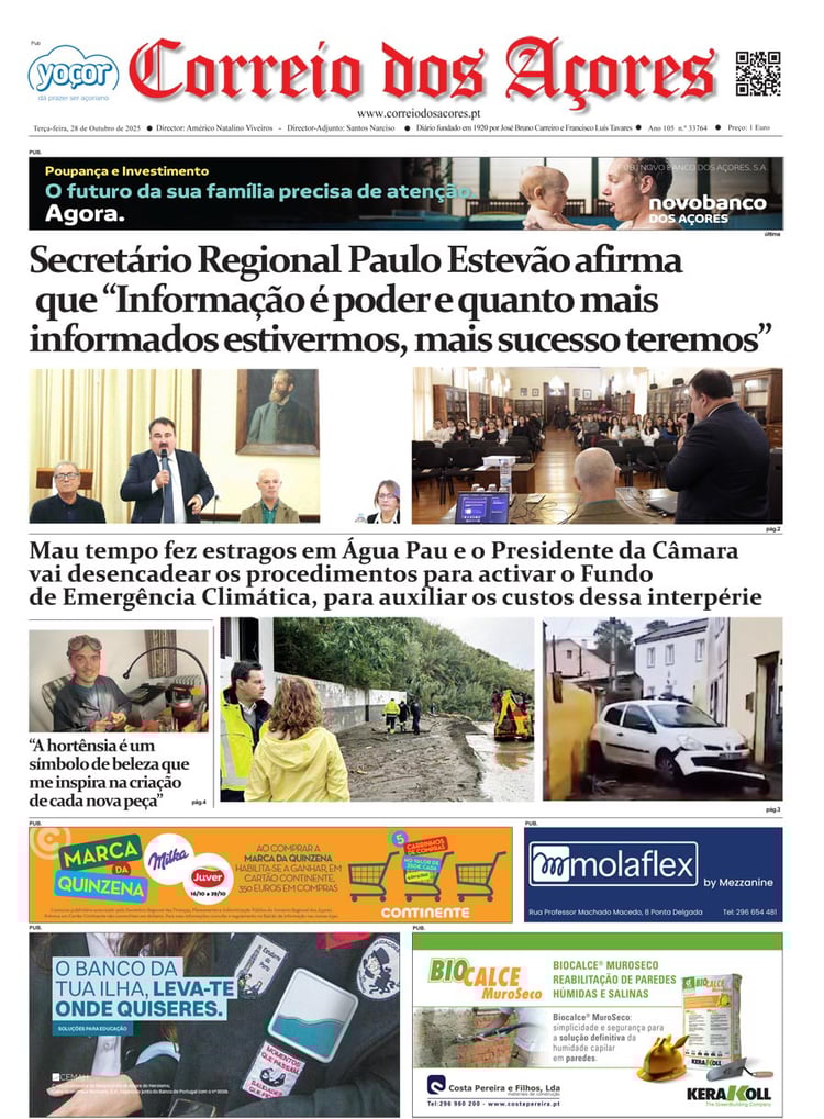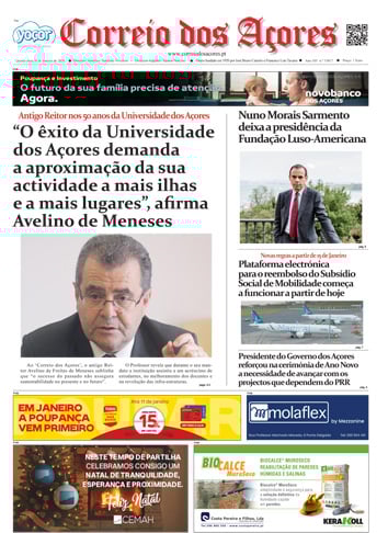 Tal como há um século, o jornal Correio dos Açores defronta-se agora com uma sociedade amedrontada. Mas este é o tempo de calcular os excessos e a vertigem que formatou as duas décadas deste milénio, e redirecionar a bússola do futuro na busca do equilíbrio que faltou nas lideranças dos países, e nos consequentes comportamentos sociais, económicos e culturais.