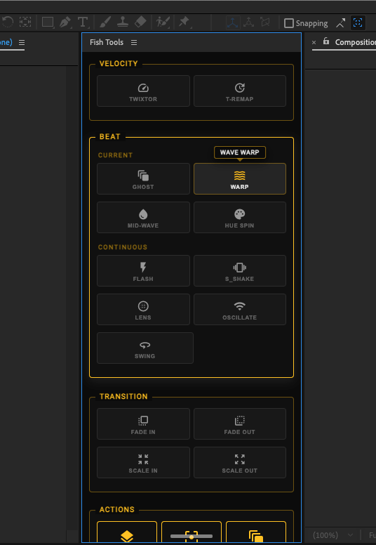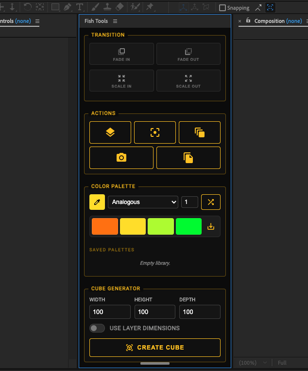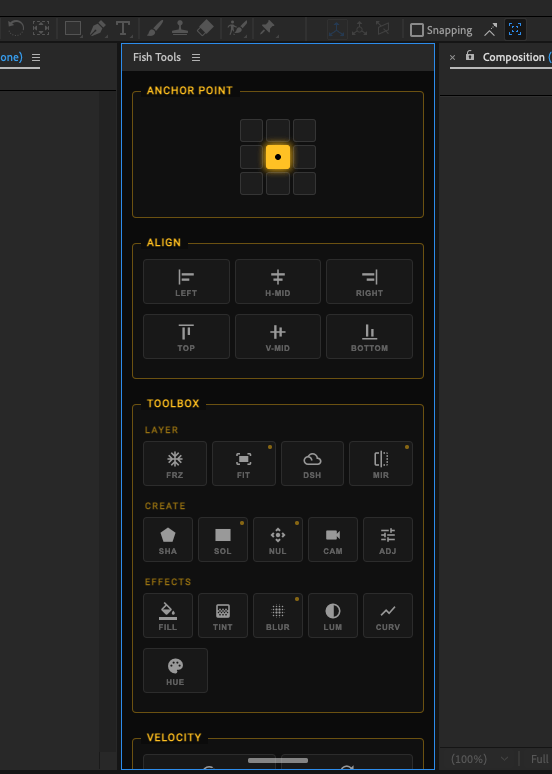 Fish Tools is a utility panel for After Effects users. It combines common layer operations, a keyframe graph editor, and system monitoring tools into a single interface.