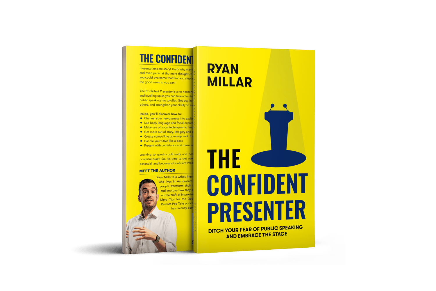 Ryan Millar is a Canadian writer, improviser, and public speaking coach who lives in Amsterdam. He uses improv and storytelling to help people transform how they communicate and present themselves. He hosts the Remote Pep Talks podcast, is the dad of two little kids, and has recently been skateboarding again (a little bit).