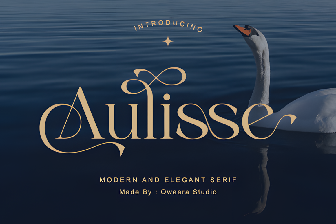 Aulisse is a high-contrast serif defined by dramatic ligatures and swan-like curves—exquisite, fluid, and built for luxury wedding invites, high-fashion logos, and premium beauty packaging.