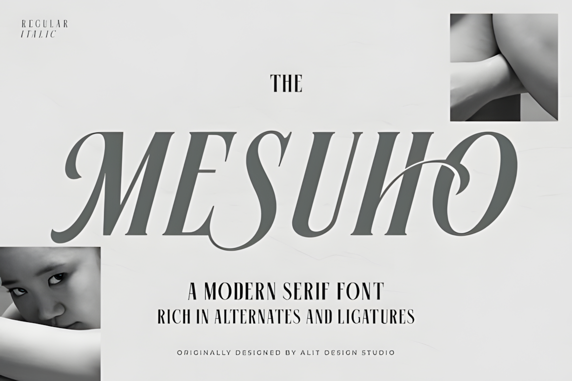Mesuho is a sophisticated serif where modern refinement meets vintage charm—effortlessly elegant and built for projects that demand artistry and readability.