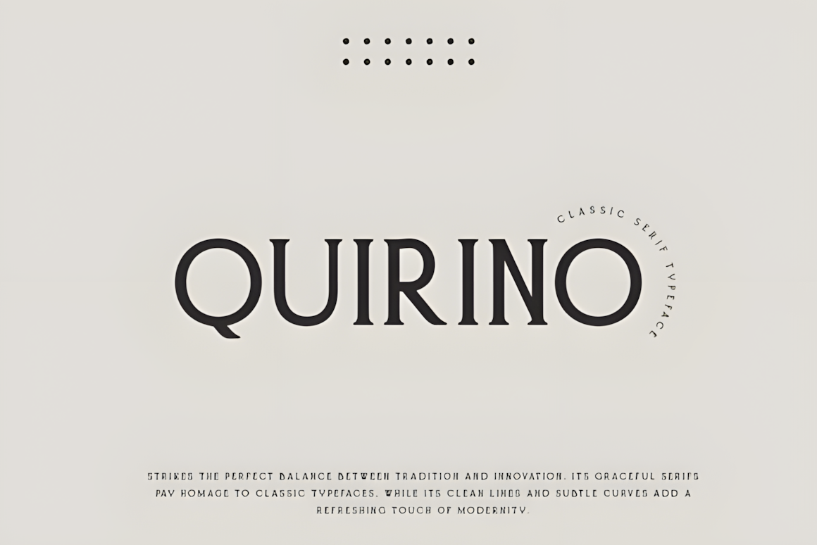 Quirino Serif is a timeless classic where refined elegance meets modern sophistication—clean, balanced, and crafted for projects that demand enduring style.