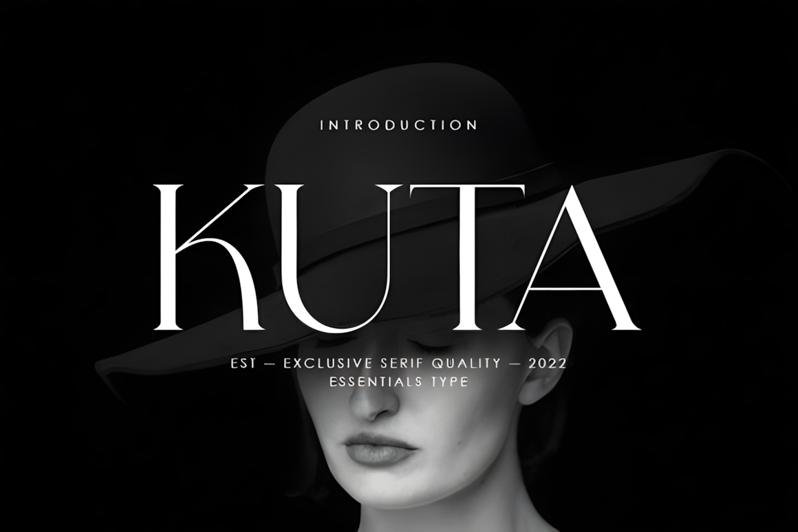 Kuta is a minimal modern serif with exclusive appeal—perfect for fashion, editorial, and lifestyle branding, pairing effortlessly with clean sans or light script.