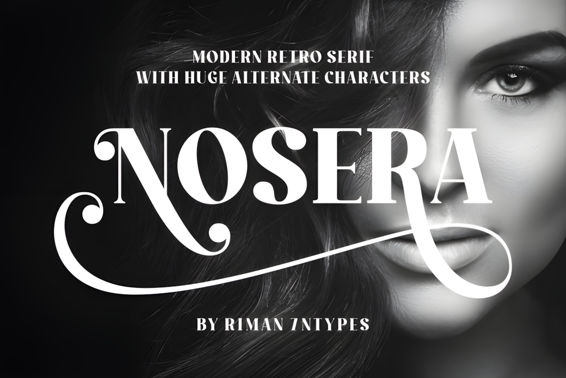 Nosera is a modern retro serif with oversized alternates—bold personality and nostalgic charm fused for logos, headlines, and designs that bridge past and present.