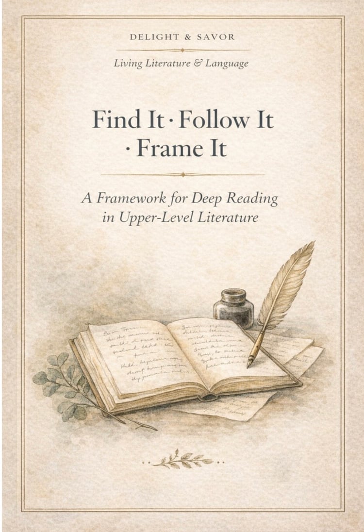 My curriculum is rooted in Charlotte Mason’s conviction that ideas matter more than information — that a child who has been taught to narrate faithfully, think carefully, and ask good questions is more prepared for life than one who has been tested on facts. I build toward that. Every handout, every framework, every writing guide is designed to help students read deeply, think clearly, and find meaning in what they read.