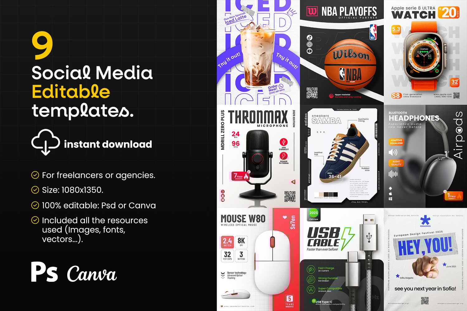 Social Media – Miscellaneous (Editable PSD + Canva Templates) + Extra Resources