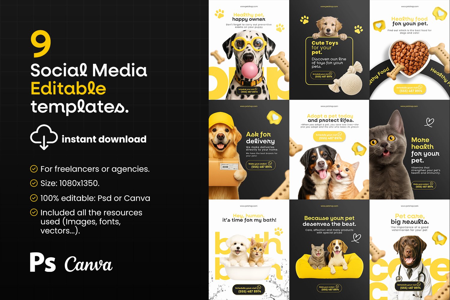 Social Media – PetShop (Editable PSD + Canva Templates) + Extra Resources