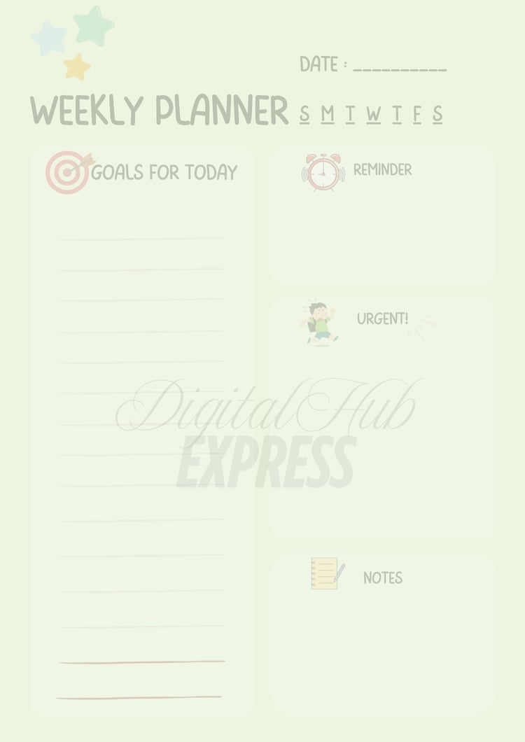 Printable 1 Full Weekly Planner PDF – Organize Your Week Easily