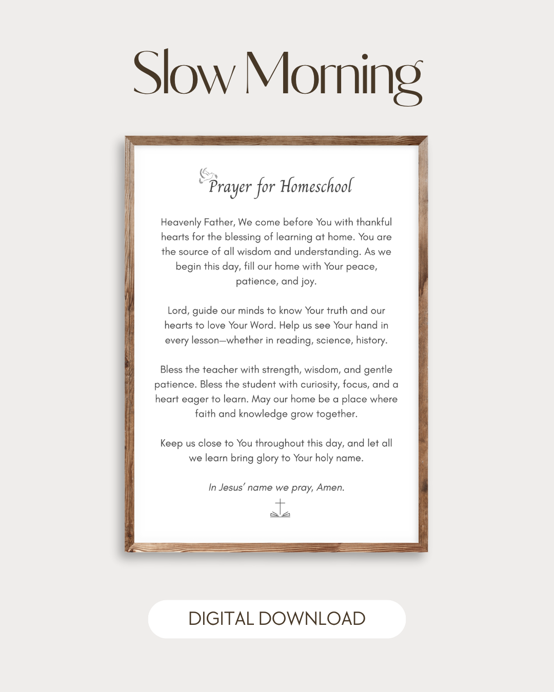 Homeschool Prayer Printable | Daily Morning Prayer for Homeschool Families | Christian Prayer for Learning at Home