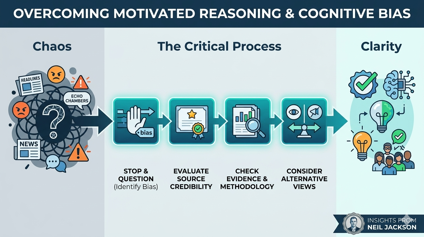 Neil Jackson defines "Fake News" not just as a political slur, but as a mechanical failure of information hygiene. He delves into the psychology of motivated reasoning—the phenomenon where individuals process information in a way that suits some end or goal already in place. When we encounter "facts" that challenge our core identity, our brains often treat them as physical threats. This bundle provides the strategies necessary to move past defensive posture and toward analytical inquiry.