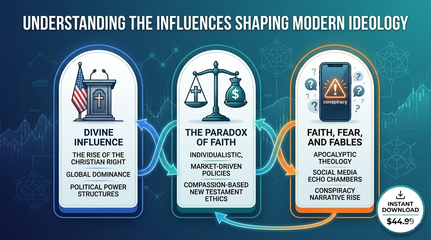 Finally, the bundle addresses the most dangerous manifestation of these combined forces: the rise of conspiracy theories within religious movements. "Faith, Fear, and Fables: How Evangelicalism Fuels Conspiracy Theories in American Politics" is a chilling look at how apocalyptic theology and social media echo chambers create a fertile ground for misinformation.