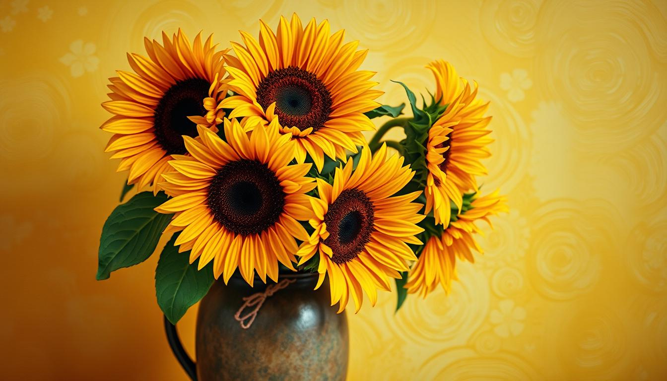 Vincent van Gogh's love for nature is clear in his sunflower series. These bright, yellow flowers seem to come alive, showing his unique style and deep feelings. His thick brushstrokes and bright colors make the paintings full of energy.