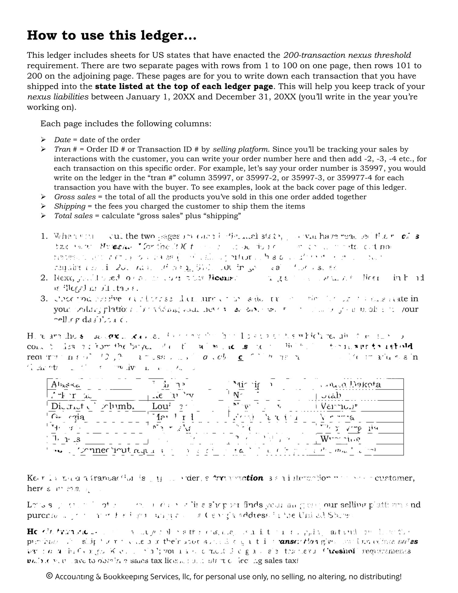 eCommerce Bookkeeping ledger - PDF download - see description for details