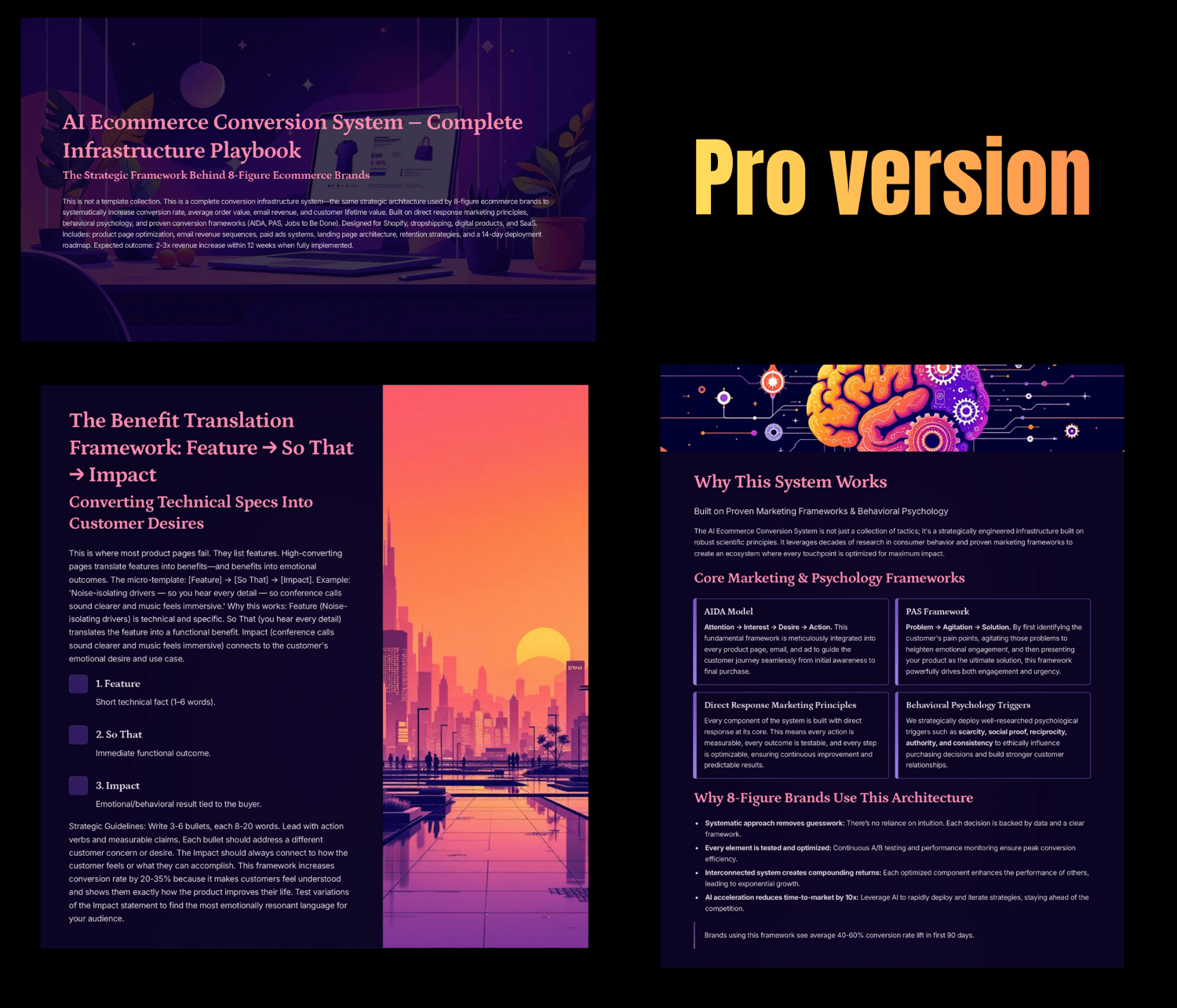 PRO transforms the product page system into a complete ecommerce revenue operating structure — covering acquisition, conversion, monetization, and retention.