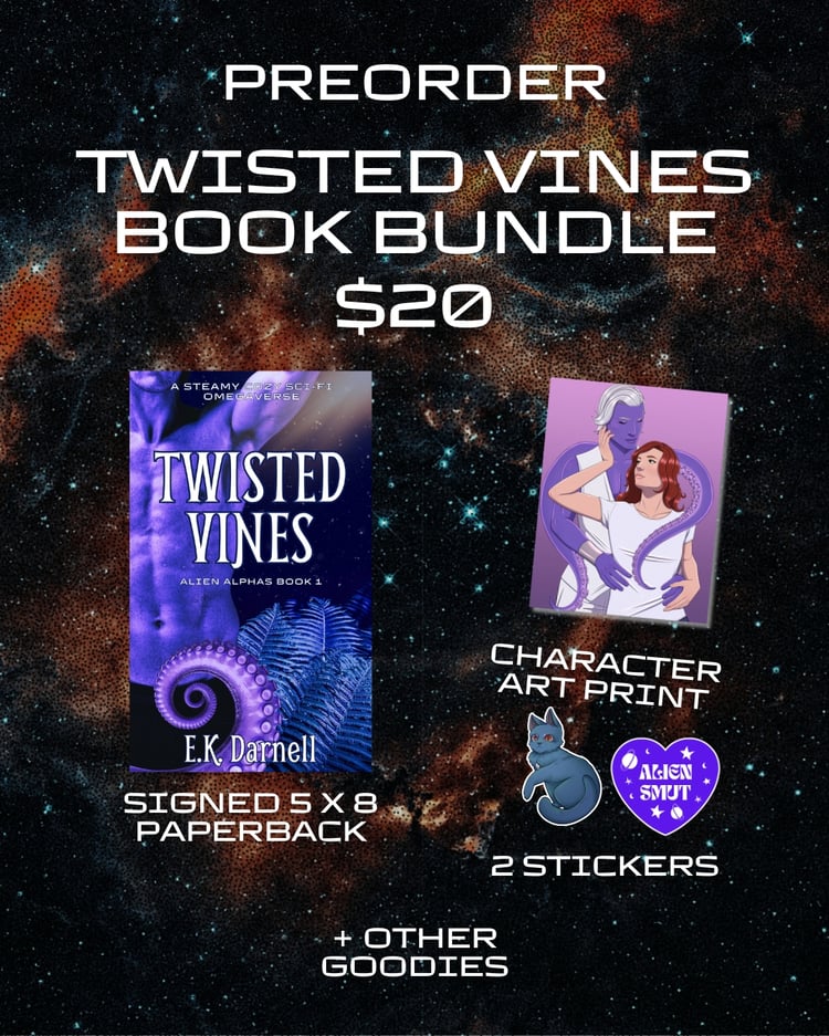 E.K. is an alien/monster romance author who enjoys writing both sweet and dark stories about humans and their monstrous partners. Have any questions or would like to chat? Email me at ekdarnellbooks@gmail.com or find me on Instagram.