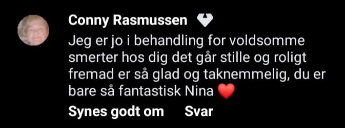 Jeg vil på det varmeste anbefale Nina til alle der døjer med de små ting lægen ikke har kunne klare, for i mit tilfælde, var det løsningen.