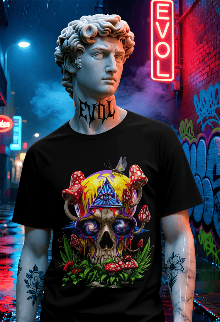 Psychedelic Skull V2 DTF/DTG Halftone Transparent PNG 360Dpi 35Lpi