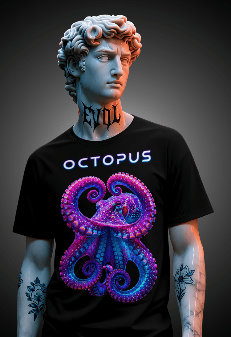 Neon Octopus DTF/DTG Halftone Transparent PNG 360Dpi 35Lpi