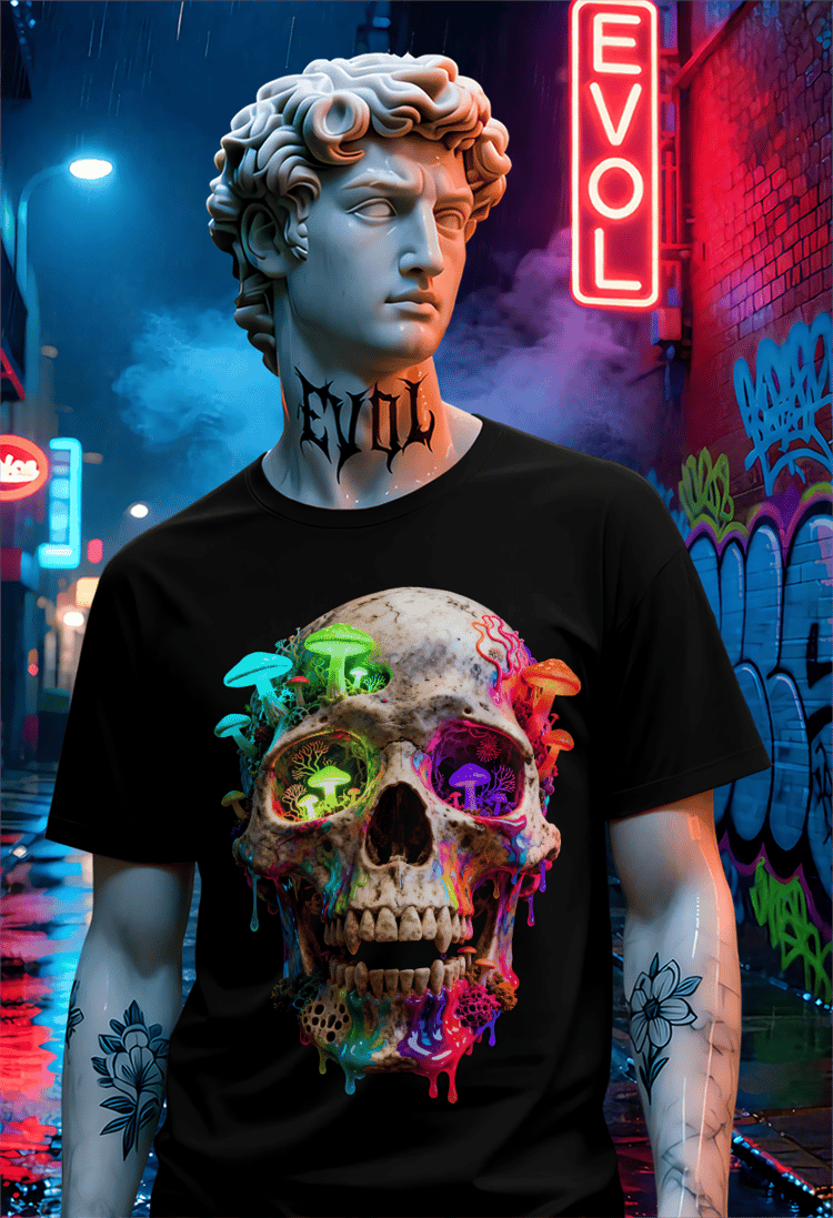 Psychedelic Skull V2 DTF/DTG Halftone Transparent PNG 360Dpi 35Lpi
