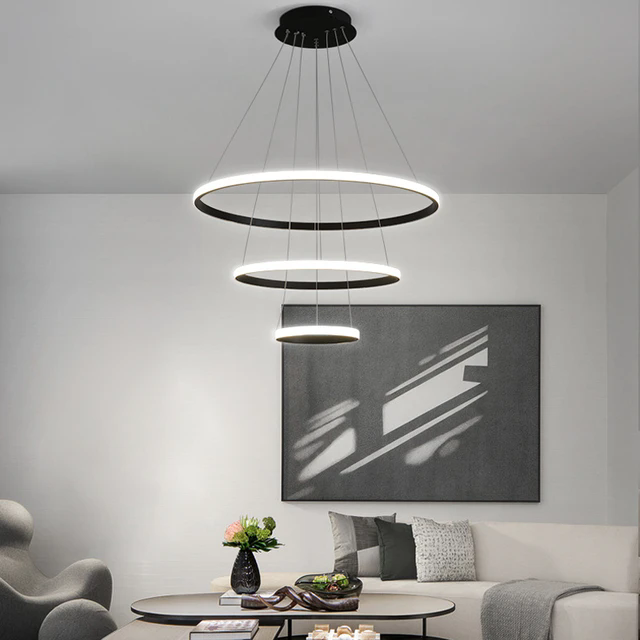 Modern Pendant Lamp Led Rings Circle Ceiling Hanging Chandelier Black Loft Living Dining Room Kitchen Indoor Lighting Fixture