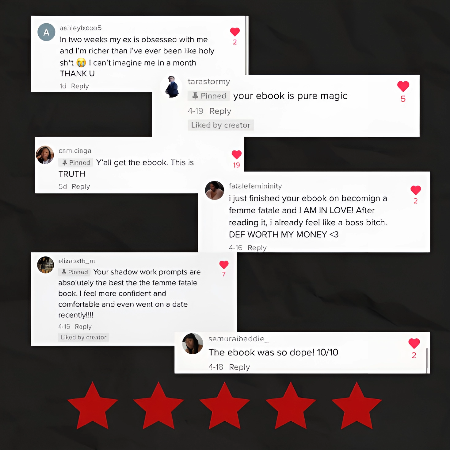 "Im so in love with this book! Truly a great confidence boost already. I’ve noticed a huge energy shift and I’ve began to put myself back on a pedestal. I originally got this because book because of men but now I Don’t even care about that part.. it’s all about me right now!"🤩