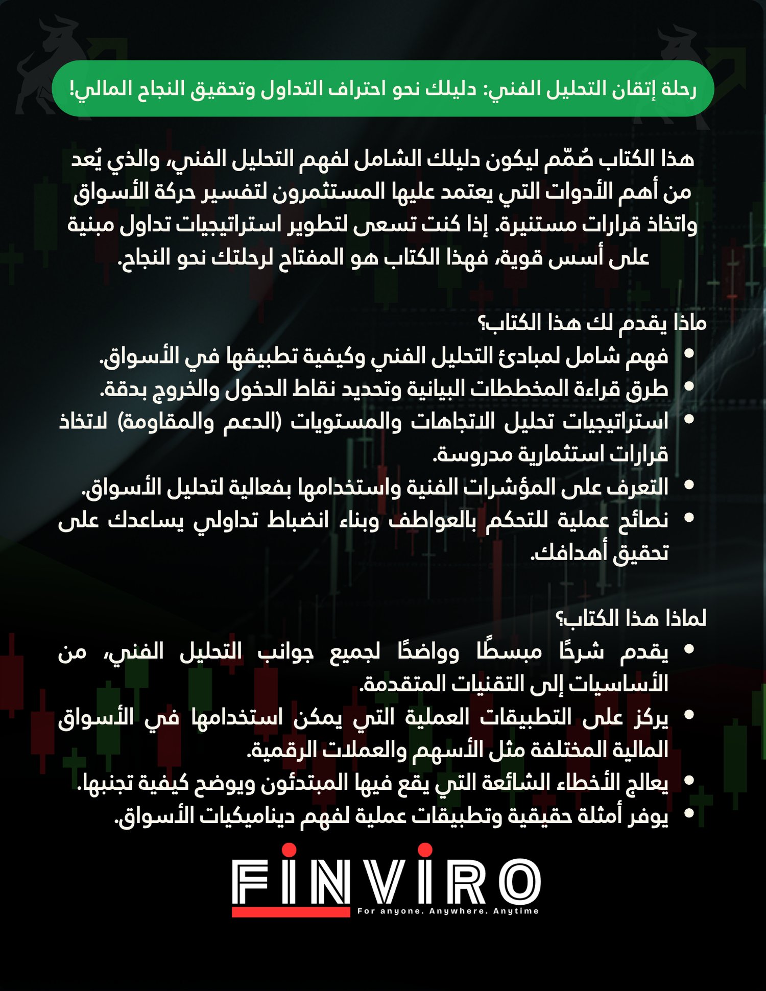 كتاب "رحلة إتقان التحليل الفني" هو أكثر من مجرد دليل تعليمي، إنه خريطة طريق حقيقية نحو النجاح في عالم التداول. سواء كنت مبتدئًا أو لديك بعض الخبرة السابقة في هذا المجال، فإن هذا الكتاب سيأخذ بيدك خطوة بخطوة لتصبح مستثمرًا مؤهلاً وقادرًا على اتخاذ قرارات مالية حكيمة