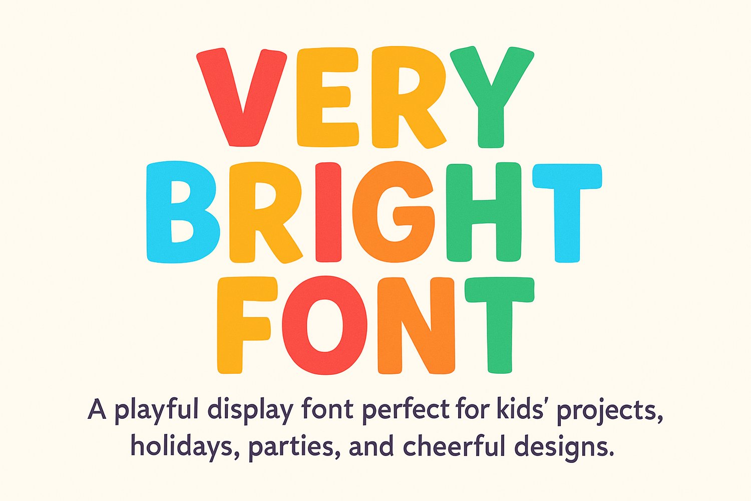 Add Fun and Creativity with the Very Bright Font Bright Font in action: perfect for kids’ projects, holidays, and parties.Looking to make your designs pop with color, energy, and personality? The Very Bright Font is your ultimate solution. This play...