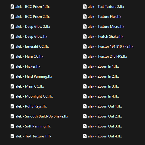 - MBL (Magic Bullet Looks), Sapphire, BCC, Deep Glow, Deep Glow 2, Twitch, Twixtor, Universe