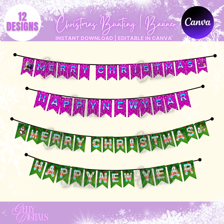 Editable Christmas & New Year Bunting | 12 Design Banner Set