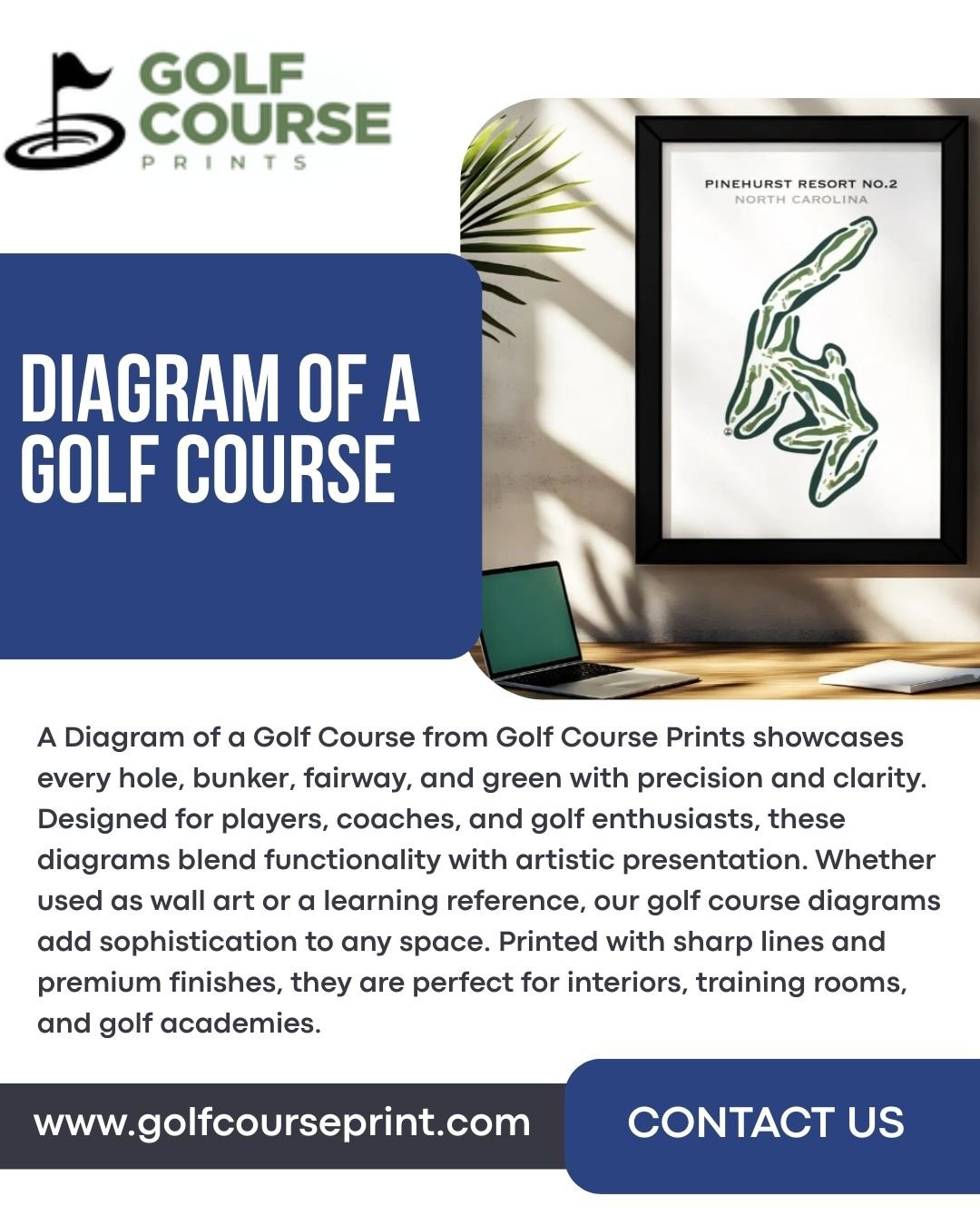 A Diagram of a Golf Course from Golf Course Prints showcases every hole, bunker, fairway, and green with precision and clarity. Designed for players, coaches, and golf enthusiasts, these diagrams blend functionality with artistic presentation. Whether used as wall art or a learning reference, our golf course diagrams add sophistication to any space. Printed with sharp lines and premium finishes, they are perfect for interiors, training rooms, and golf academies.