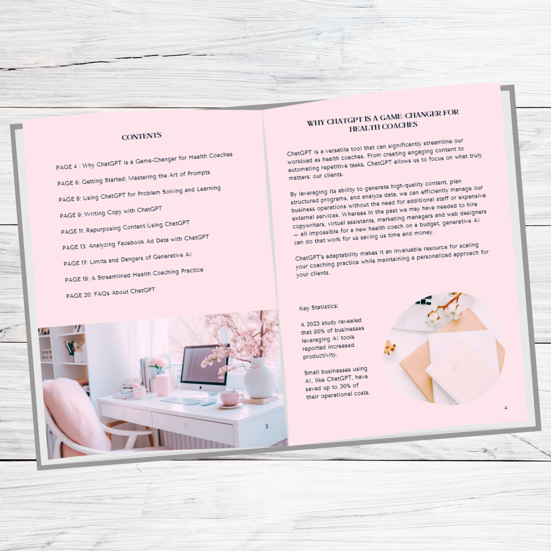 This eBook is packed with actionable insights and step-by-step instructions designed to help health coaches like you unlock the full potential of ChatGPT.