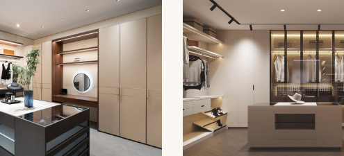 * Wall-to-ceiling cabinets for jackets, bags, and accessories