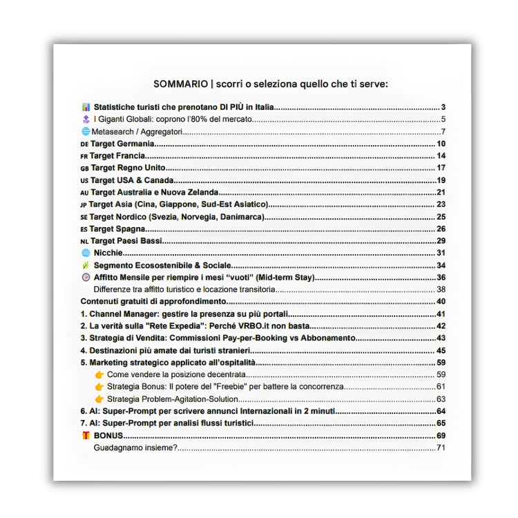 Unisciti al programma “Bonus Passaparola”. Per ogni host che acquista la guida 61 siti o il kit per host tramite il tuo link referral, ricevi un credito pari al 33% del costo del prodotto in Buoni Amazon. Tu aiuti un collega, noi premiamo te. ll bonus è un incentivo promozionale occasionale e non costituisce compenso per attività lavorativa o professionale. Più INFO