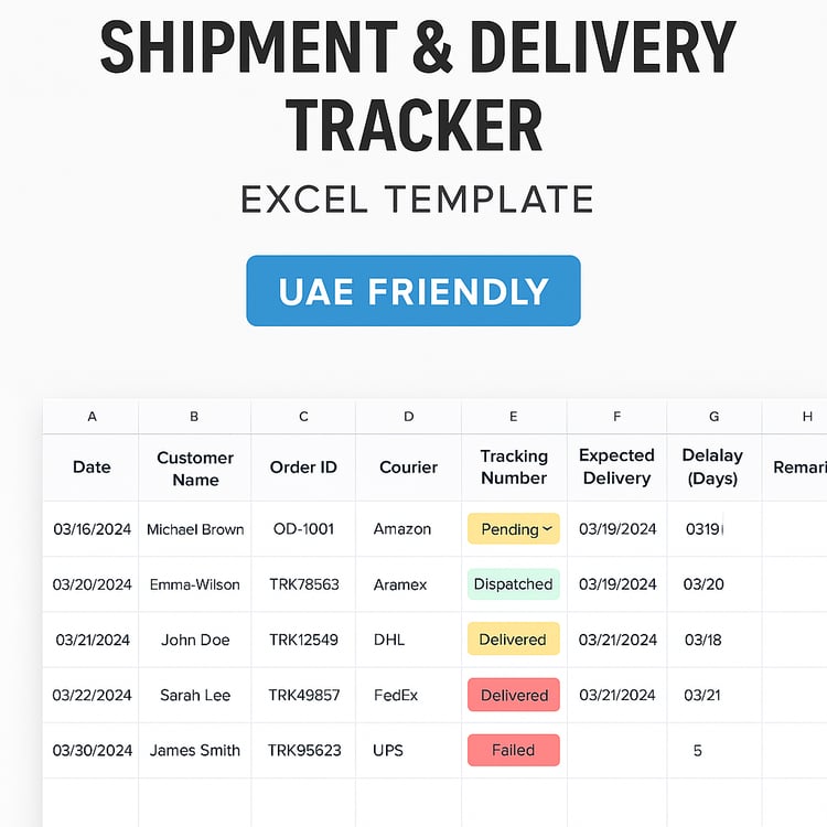 تتبع الشحنات، تنظيم المخزون، وإدارة الطلبات بسهولة تامة — ملفات قابلة للتعديل، بسيطة، ومناسبة للشركات الصغيرة والمستقلين.