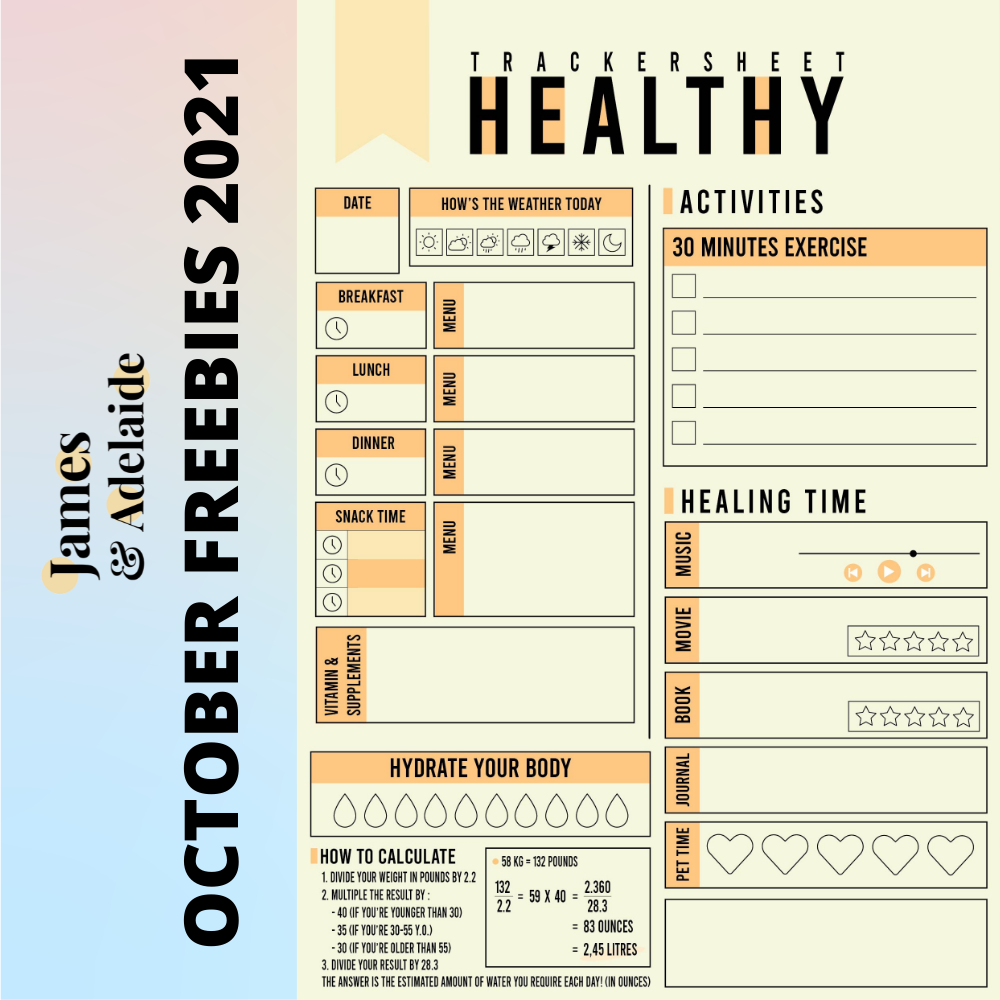 OCTOBER FREEBIES! - Healthy Tracker Sheet | for Planner & Journal | Digital and Printable use