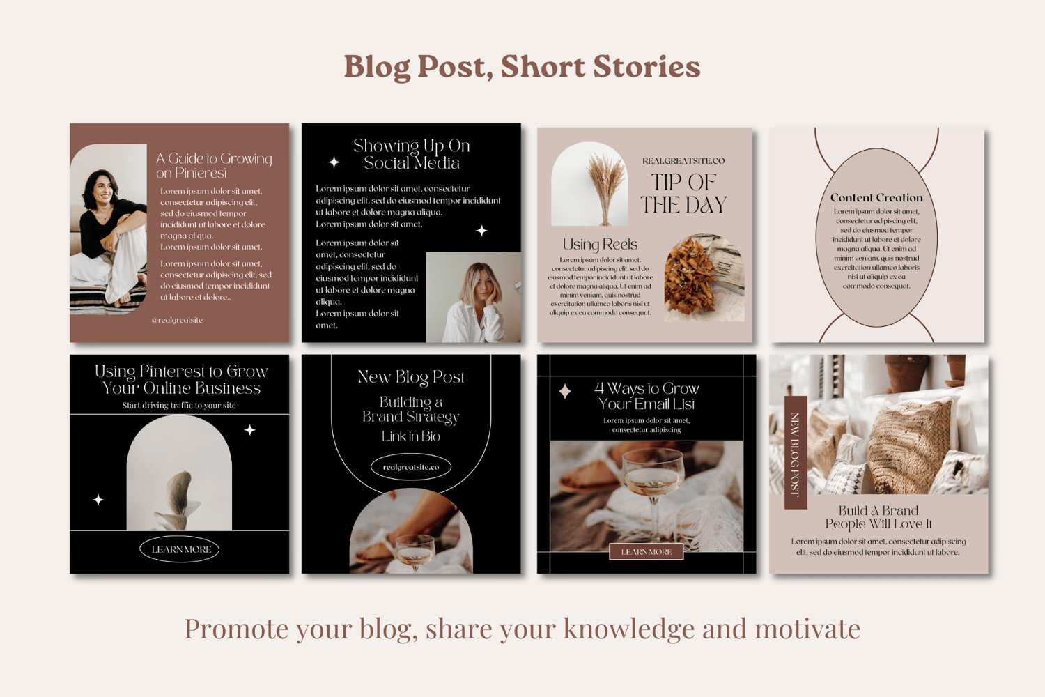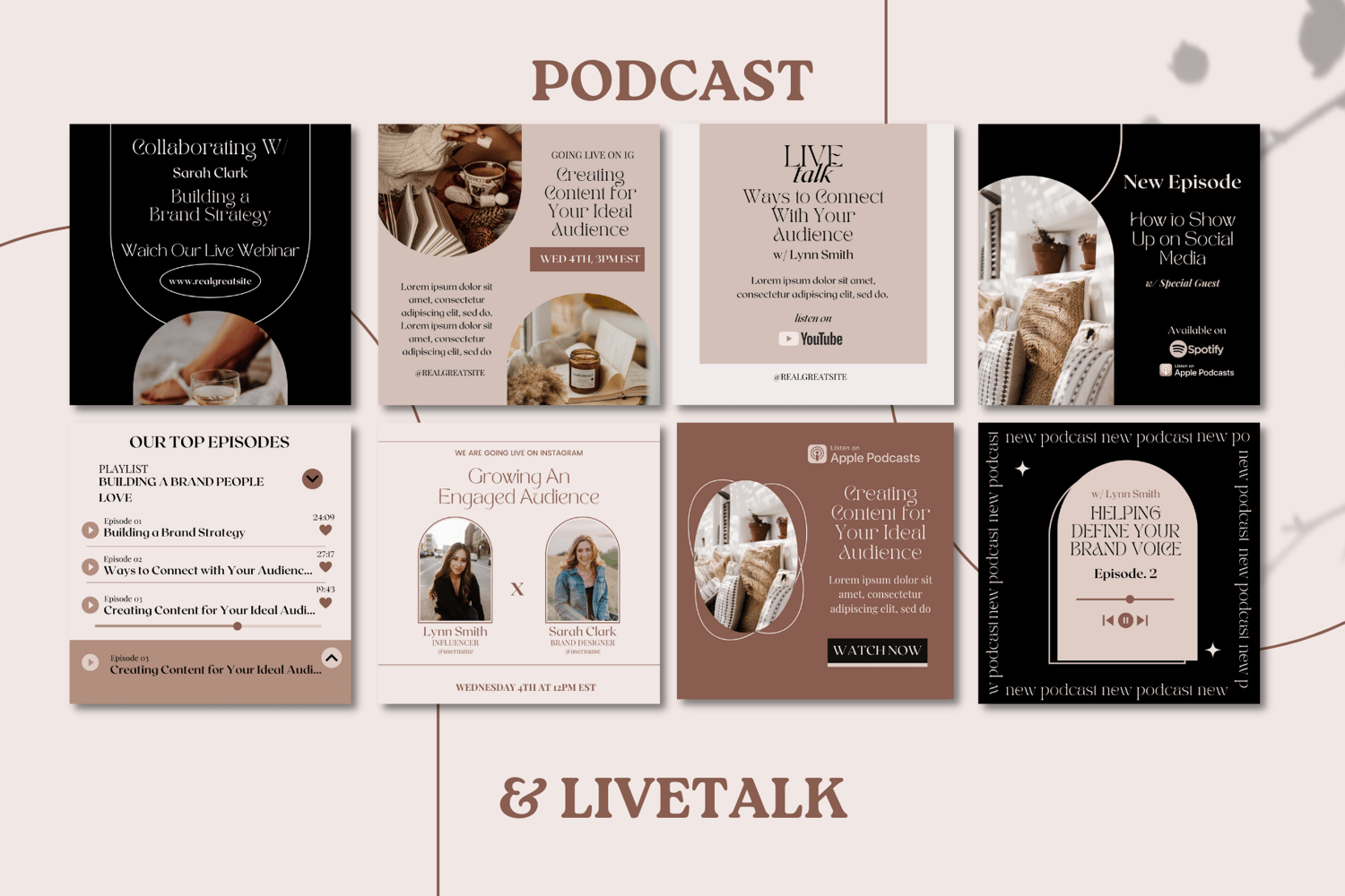 Templates to engage, nurture, grow, attract your ideal audience. Share-worthy templates to help you grow your following, market your offers, podcast, blog posts and plenty more.